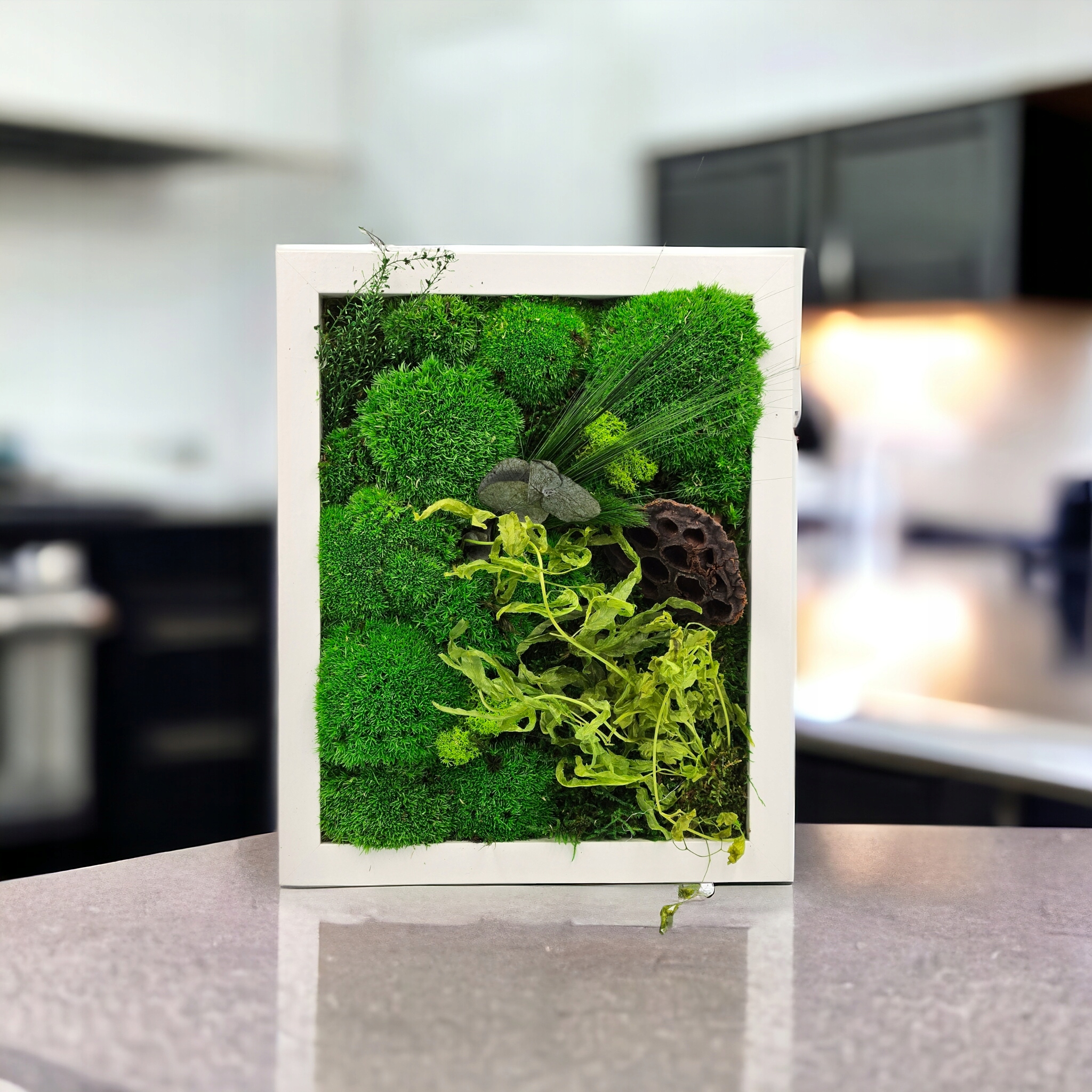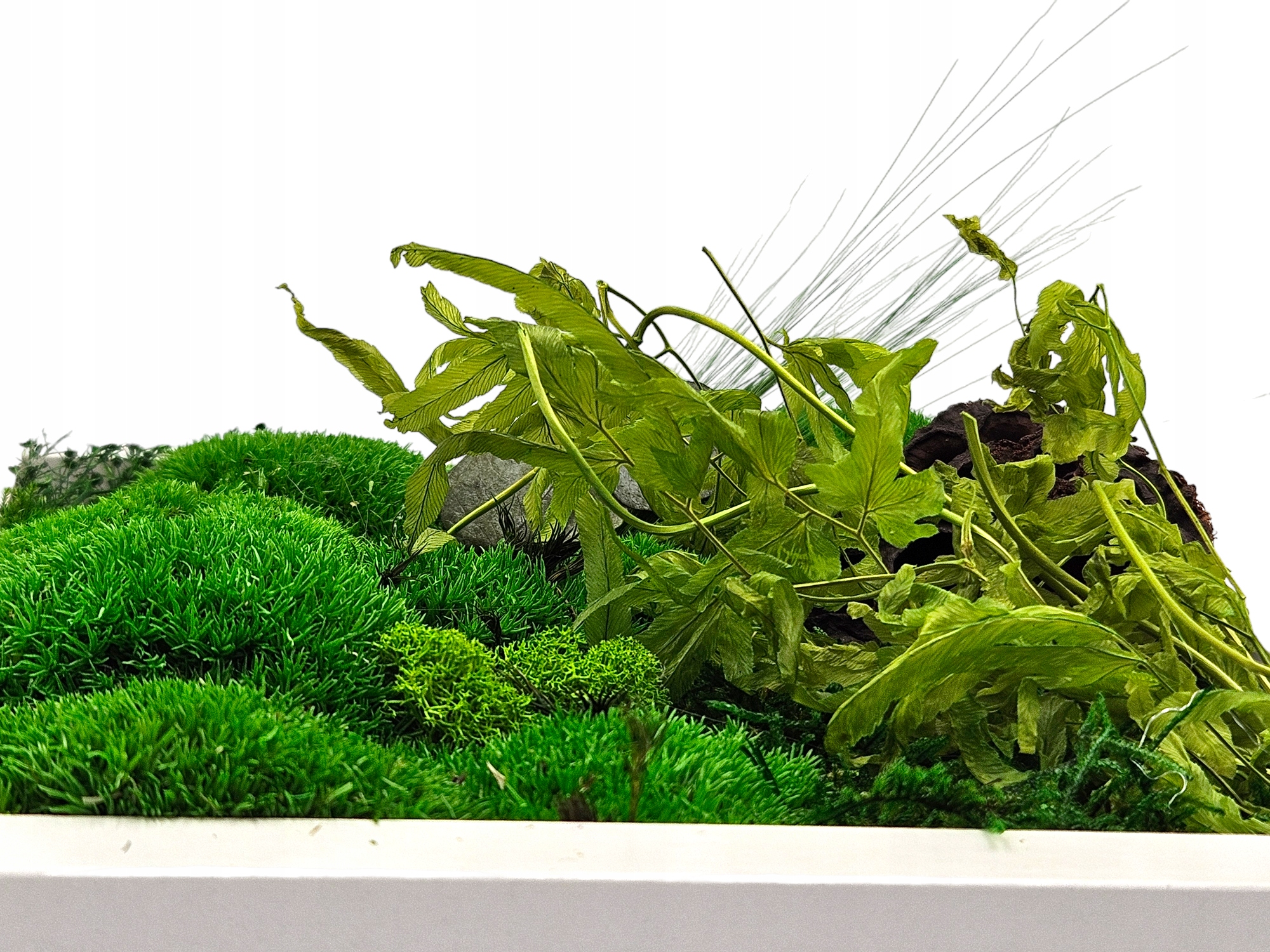 Живая картина из мха, экзотической зелени 3D, БЕЗ ПОЛИВА, белая рамка на рабочий стол.