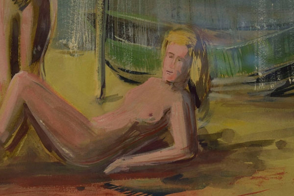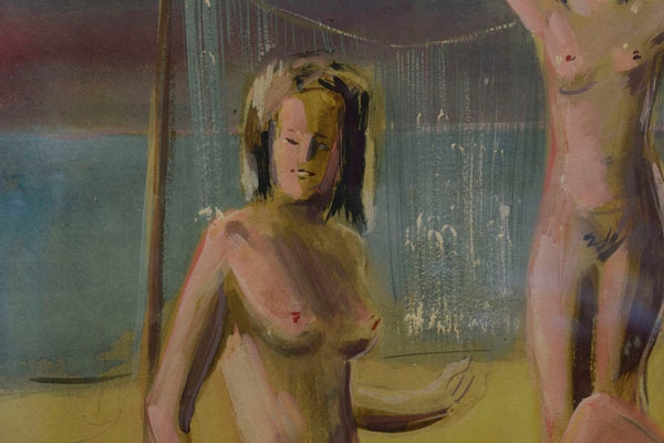 XX век. Старая живопись, женщины на пляже, акварель (?), Подписана. h1> Старое акварельное изображение (?), На котором изображен солнечный пляж, на заднем плане вы можете увидеть Голубое море. На пляже есть голые женщины.
