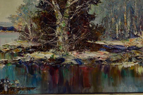 Живопись старого 20 -го века, пейзаж над водой, масло, подписано, 104 х 55 см