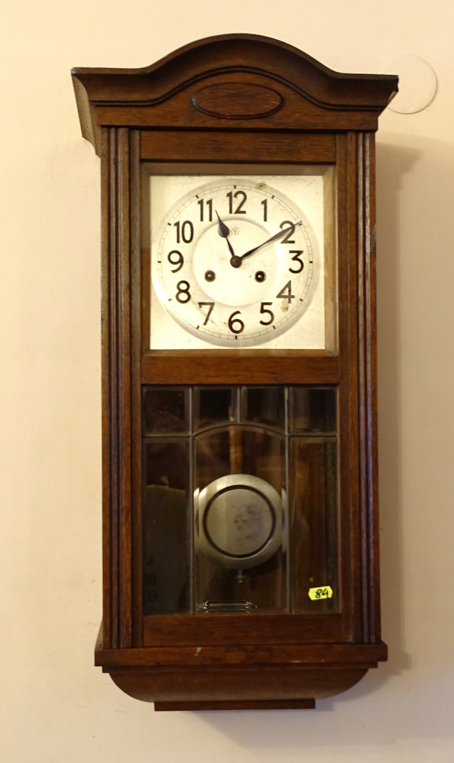 Стильные немецкие настенные часы. Часы от известного и авторитетного немецкого бренда, в красивом декоративном футляре. Механизм часов в рабочем состоянии. Механизм часов отбивает полные часы и полуторачасовые часы на спиральном гонге. .