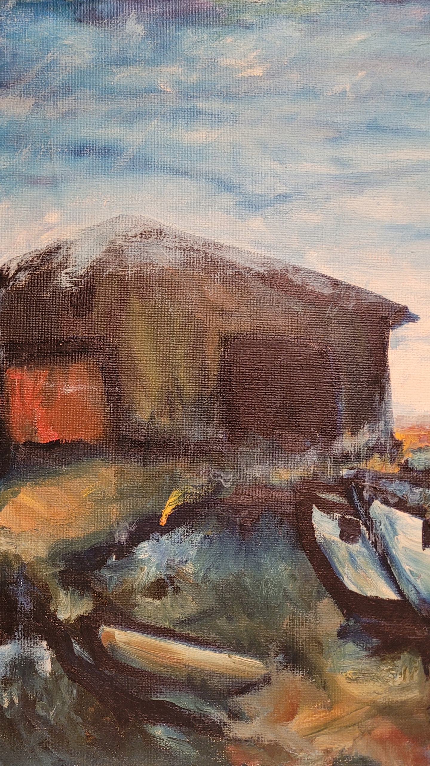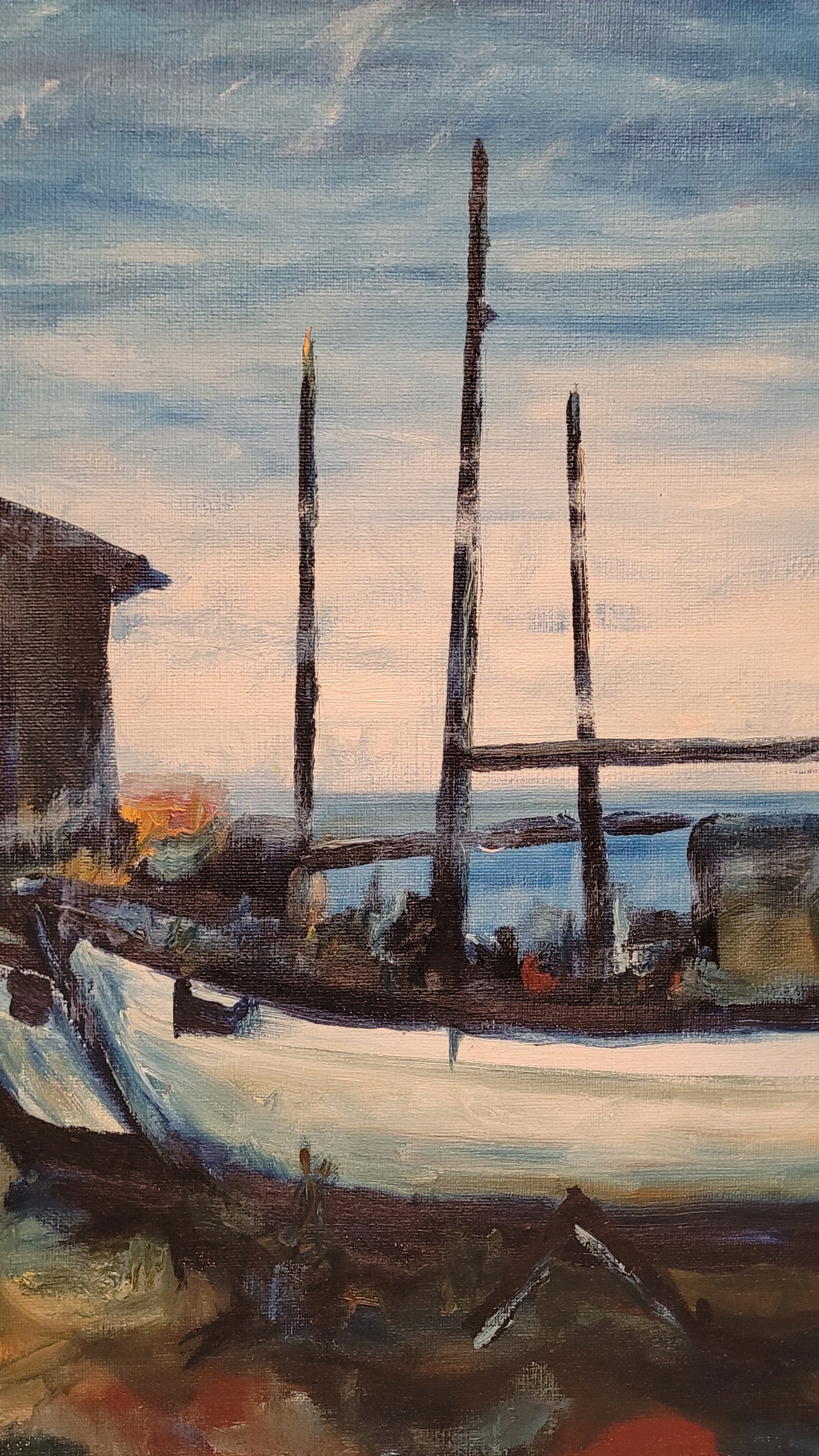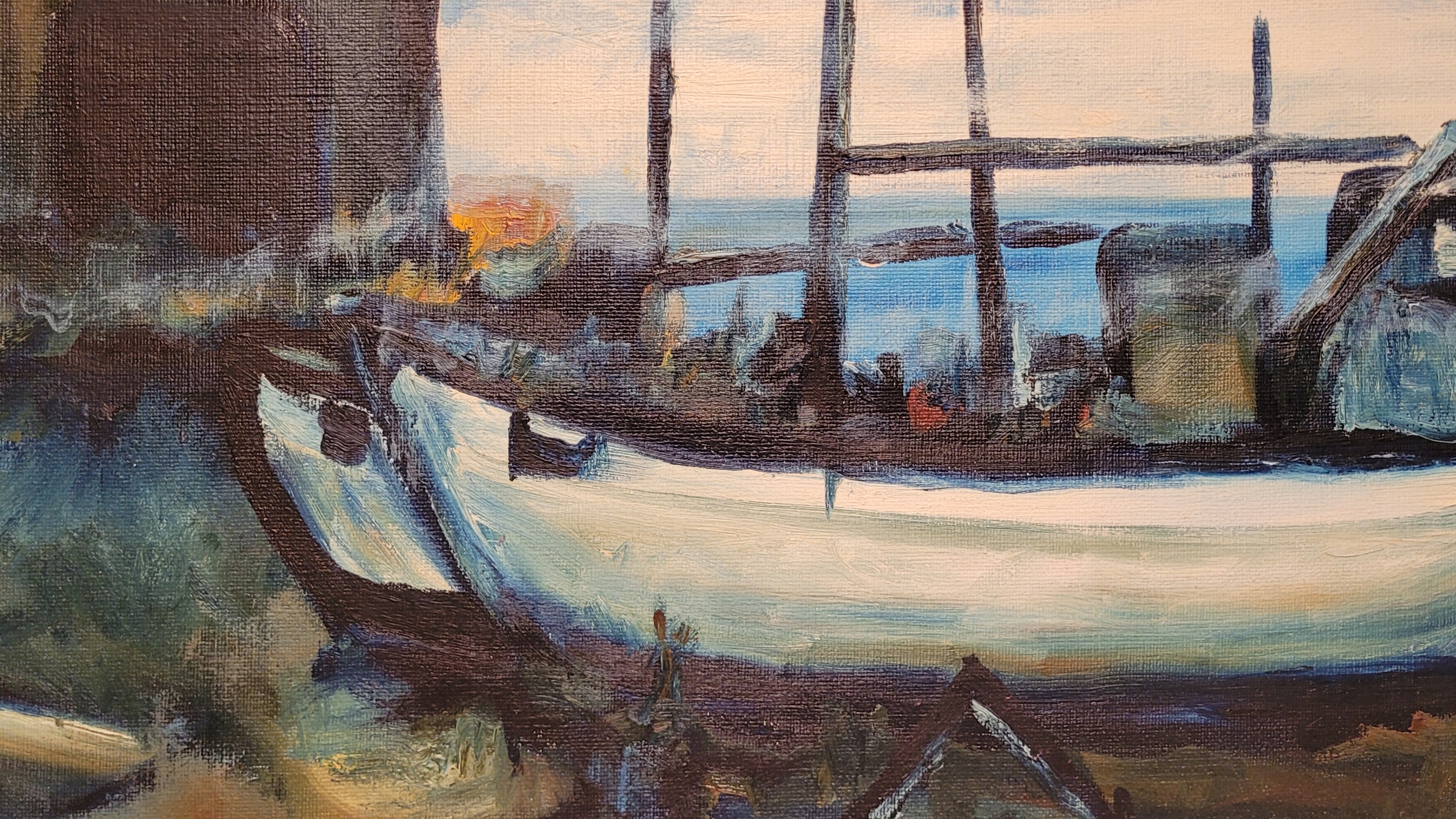 Предмет продажи — красивая старинная картина маслом «РЫБЬЦОВСКИЕ ЛОДКИ».