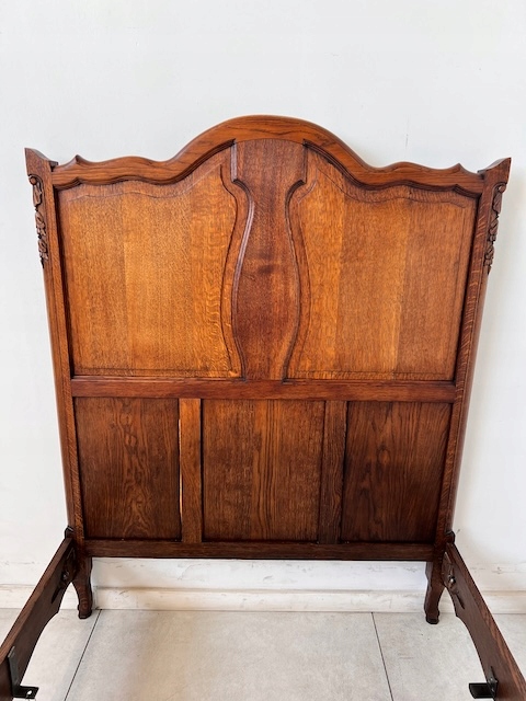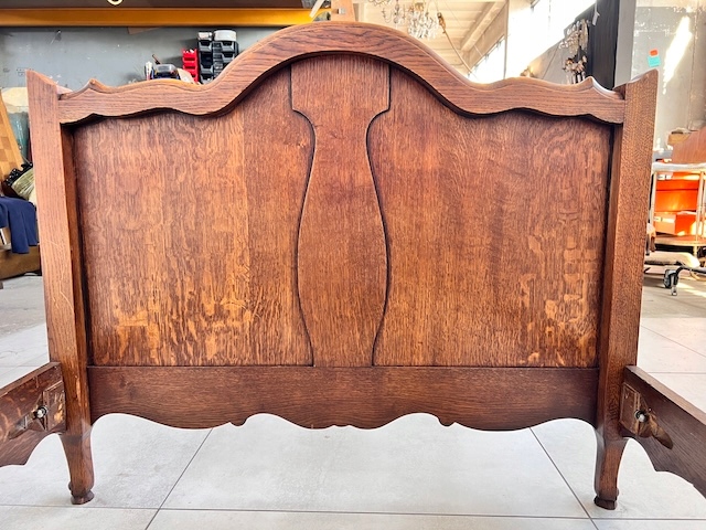 Дубовая кровать, сделанная в стиле Луи. Очень хорошо. Сама рама. Это в хорошем состоянии. Он имеет типичные признаки использования. Кадра и матрас должны быть выбраны для внутренних измерений, то есть 95 x 195 см. Из -за размеров это также может быть детская/ молодежная кровать. Кровать готова к вставке.