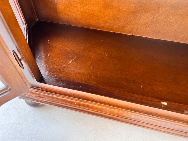 Стильный сайт. Очень хорошенькая. Он находится в хорошем состоянии. Повреждений и дефектов нет. Имеет типичные следы использования и небольшие царапины. Замок функциональный, в комплекте есть ключ. Внутри четыре полки. Витрина не разбирается и доставляется новому владельцу в целости и сохранности. Он готов к вставке.