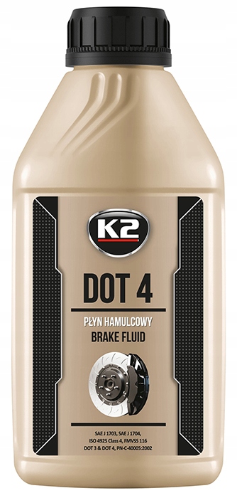 K2 DOT 4предназначена для автомобилей с системами ABS, ESP, ASR, SBC. Соответствует требованиям действующего в Польше стандарта PN-C-40005:2002, а также американским стандартам FMVSS 116 DOT4, SAE J 1703, SAEJ 1704, ISO4925, Class 4, FMVSS 116. Имеет Сертификат соответствия. Института автомобильного транспорта в Варшаве.