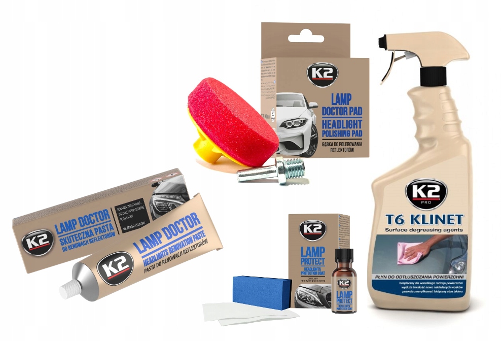 Прекрасным дополнением пасты K2 LAMP DOCTOR является защитное покрытие для фар K2 Lamp Protect, которое защищает лампы от матирования, пожелтения, царапин и УФ-лучей в течение года после нанесения покрытия.