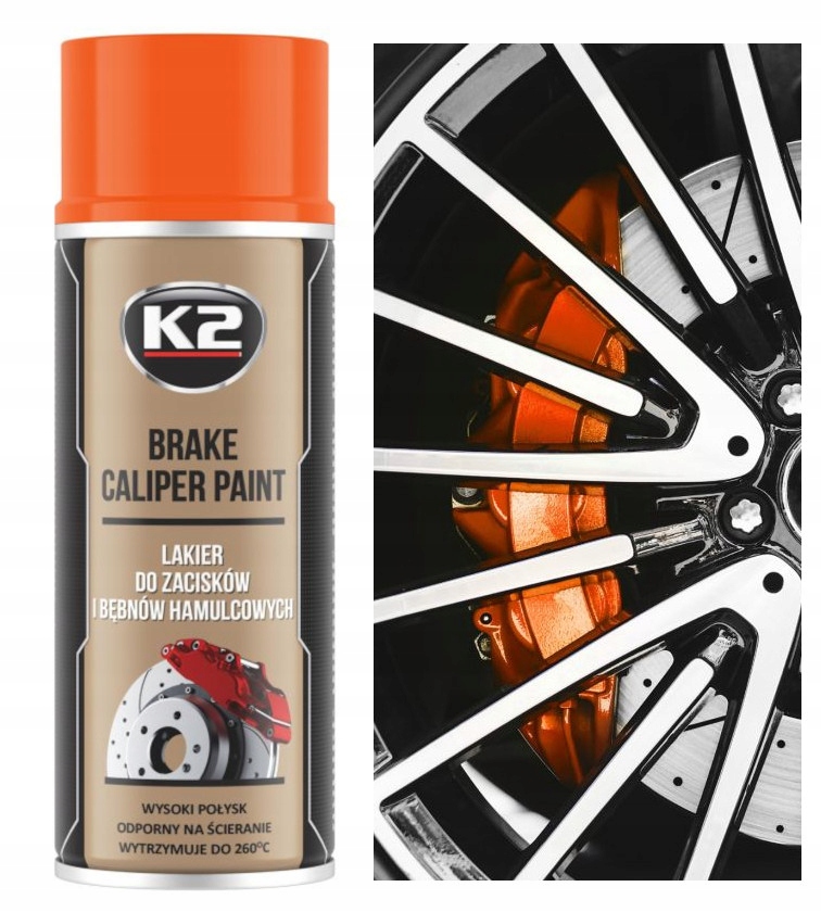 K2 Краска с лаком для рисования тормозных суппортов апельсиновый спрей