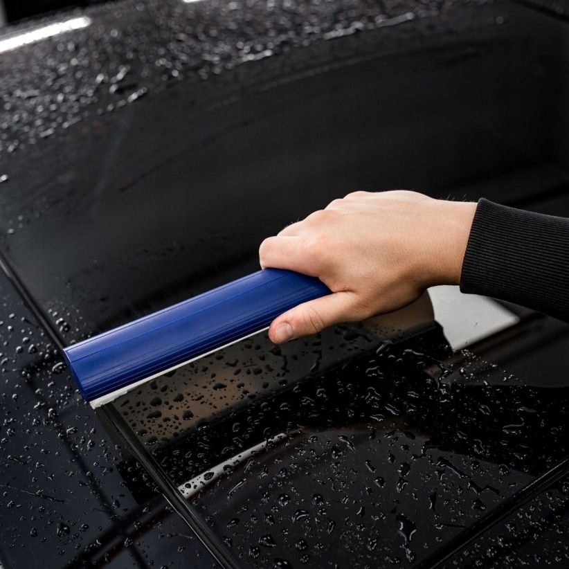 Ракель — идеальный способ высушить машину в два раза быстрее. Силиконовое лезвие заставляет капли воды стекать с тела, оставляя его сухим и без разводов.