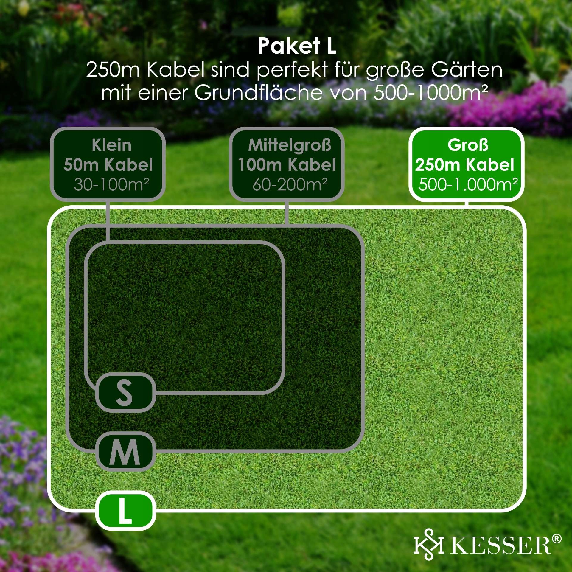 - ➡ Оптимизированное и безопасное скативание: наш пограничный кабель используется для определения назначенной области, после чего косилка должна двигаться и косить газон. Планирование и сборка просты и легко реализовать благодаря нашим кабельным разъемам. Как только робот косания достигает расположенного кабеля, он перенаправляется или останавливается так, что только область, отмеченная пограничным кабелем. Благодаря диаметру рукава всего 3 мм и внутреннему диаметру 1 мм, вы можете расположить кабель особенно осторожно в вашем саду. Тем не менее, 24 жестяных и медных алюминиевых вен обеспечивают максимальные результаты. Магнитное поле, которое возникает в результате укладки кабеля, обнаруживается всеми стандартными работами и воспринимается как ограничение. Благодаря нашему размеру наши кабели подходят для небольших садов с площадью 30 м² до больших газонов с площадью 1000 м²