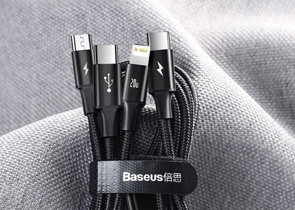 Кабель, благодаря трем различным зарядным выходам, позволит заряжать смартфоны с портами USB-C, Micro-USB и Lightning. Вам не придется брать несколько кабелей, что экономит место. Кабель имеет специальную застежку-липучку, которая делает транспортировку аксессуара еще проще.