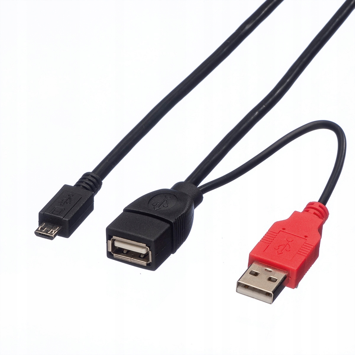 Кабель ROLINE USB2.0 Y, 2x Тип A M/F — 1x MicroB M, 1 м