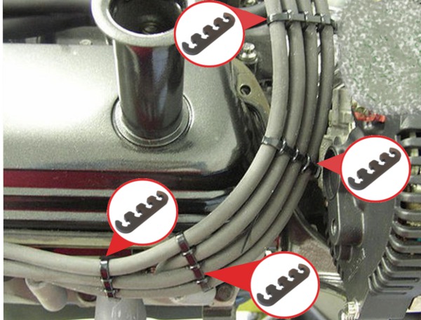 Кабели часто «летают» по всей поверхности двигателя, что заставляет их подвергать воздействию перегрева или просто занимать пространство и нарушать маску: