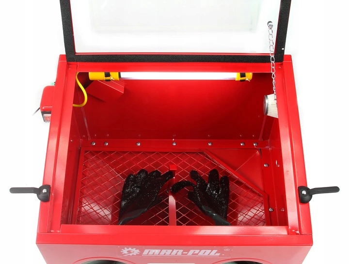 Отличный кабинный пескоструйный аппарат емкостью 90 л, подключенный к компрессору, позволяет быстро и эффективно очистить поверхность.