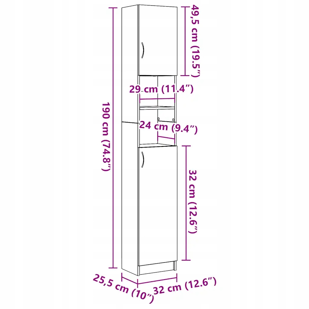 Шкаф для ванной комнаты, дубовый ремесленник, 32x25.5x190 см.