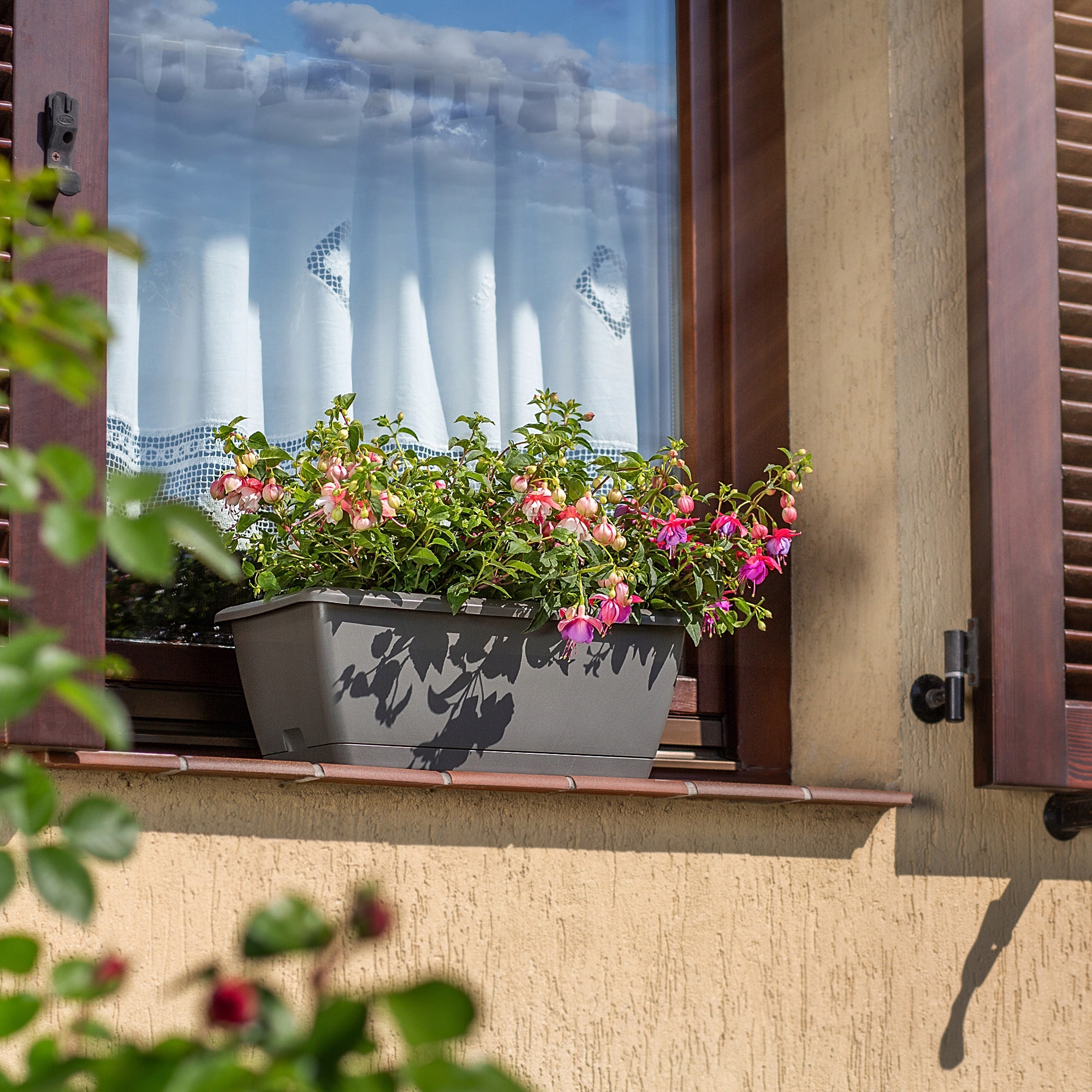 ✅УНИВЕРСАЛЬНЫЕ ЦВЕТА - балконный ящик имеет простой и минималистичный вид, и поэтому - Хорошо сочетается с большинством аранжировок. Четыре доступных цвета: терракотовый, коричневый, антрацитовый и серый — одинаково универсальные и вневременные варианты.