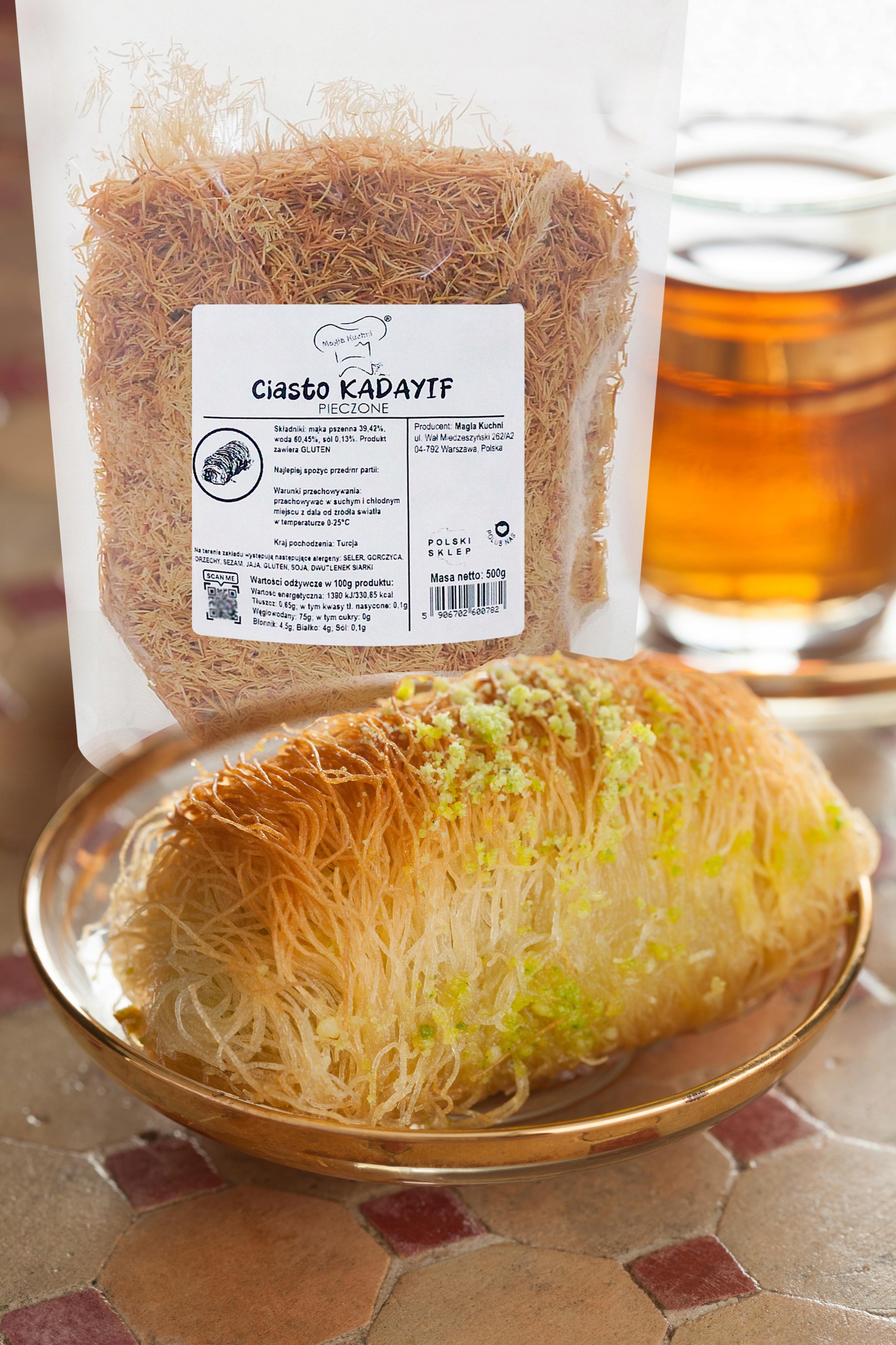 ✅ Тонкие нити пирожных катайфи обеспечивают необычайную хрустящую пробку после выпечки или жарки, создавая уникальную структуру, которая идеально сочетается с добавками, такими как орехи, сиропы или Дубай Шоколад .