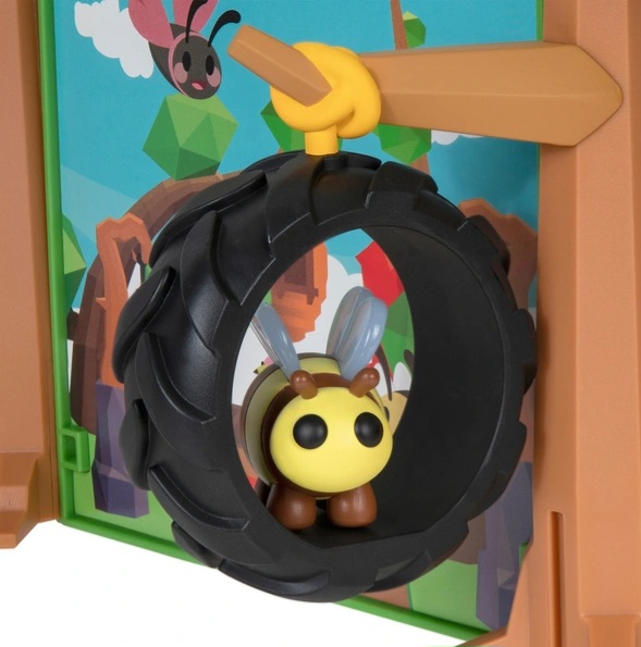 Содержимое: 1x Adopt Me! с кафе и детской площадкой, 1 фигурка лучника, 1 фигурка гостя, 4 фигурки животных, различные аксессуары.