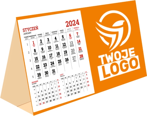 Основа календаря загибается снизу, а затем приклеивается. Следов склейки нет. Календари отправляются вам уже в сложенном виде, достаточно загнуть их основание внизу в месте сгиба и положить календарь на стол.