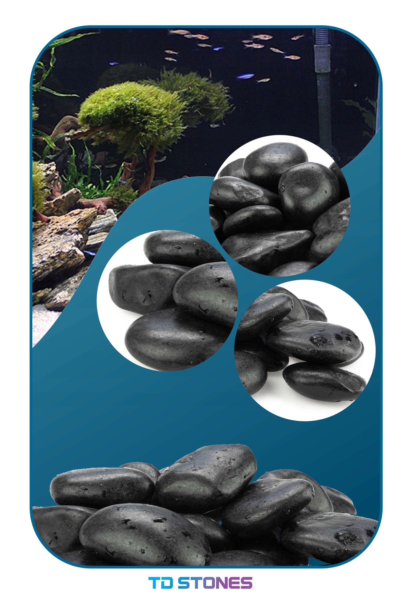 ➡ глянцевая черная камешка - отличный выбор, чтобы создать элегантное расположение в аквариуме. В контакте с водой и с адекватным аквариумным освещением эти камни приобретают тонкое сияние, которое в сочетании с растительностью создает сказочный ландшафт