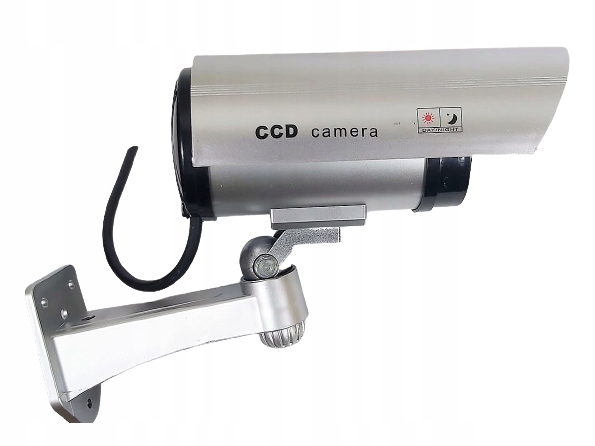 из -за промышленной камеры для мониторинга. Благодаря использованию всех элементов, которые есть у обычной камеры, то есть объектива, кабеля и ручки, это делает манекен верным копией промышленной камеры. Это не требует дорогостоящих разрешений для мониторинга людей. Возможность вращения и наклона камеры . Камера создает впечатление существующего на объекте системы мониторинга и пугает потенциальных злоумышленников. Идеальное решение на участках, частных свойствах или в магазинах. Захватываемые винты и дюбели для установки камеры на стене и наклейка с предупреждением. что это не вызывает того, что он не отличается от реального, и мигающий светодиод дает 100% подлинность