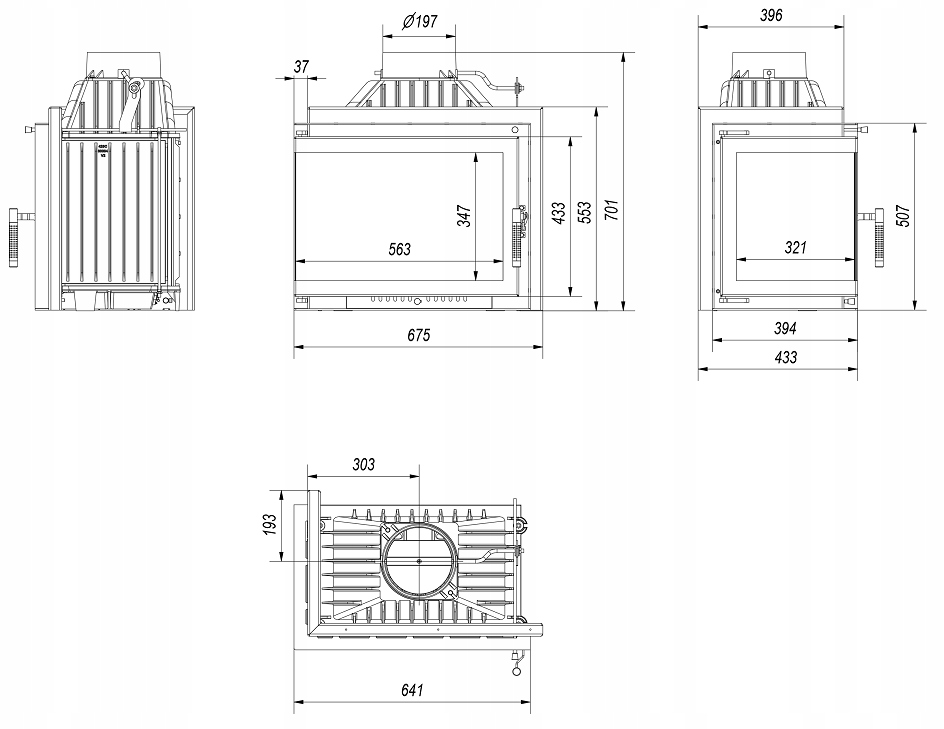 Вставка воздушного камина чугунная с заслонкой Simple M/S 8 правая или левая BS (стыковочное стекло без стойки)