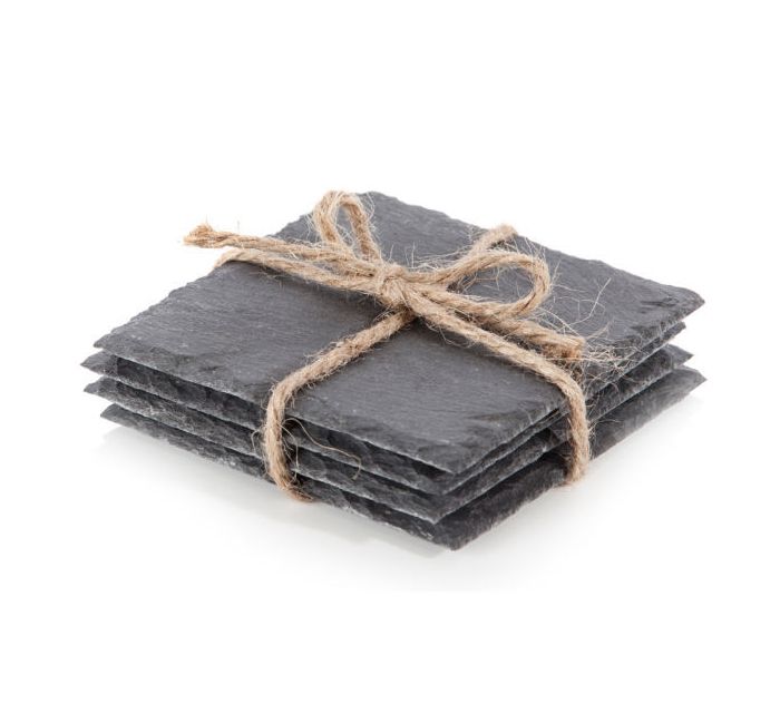 Набор из четырех оригинальных подставок для горячих кружек, стаканов и т. д. из натурального сланца. Они подходят как к горячим, так и к холодным блюдам. Идеально подходит для подарка.