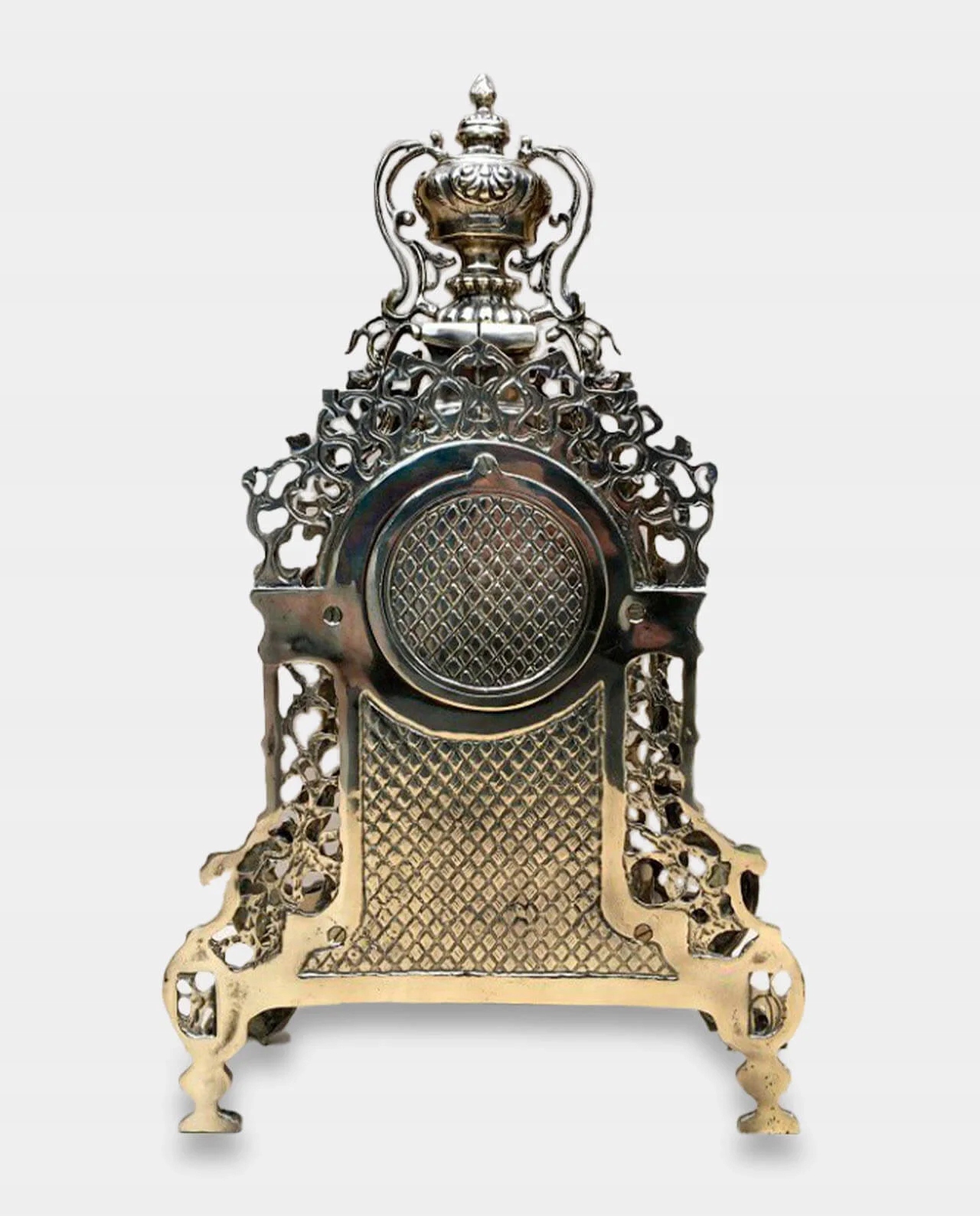 Часы в камине SO -SALLED, изготовленные из латуни. Красивый, оригинальный и богато украшенный в стиле дворца вызывает роскошь и благородство старых времен, символизируя непрерывность поколений. Сделано из эксклюзивного материала, очень точно, с вниманием к наименьшим деталям. Это производит огромное эстетическое впечатление и имеет вечный стиль. Подходит много интерьеров. Красивый свадебный подарок или для подоконника.