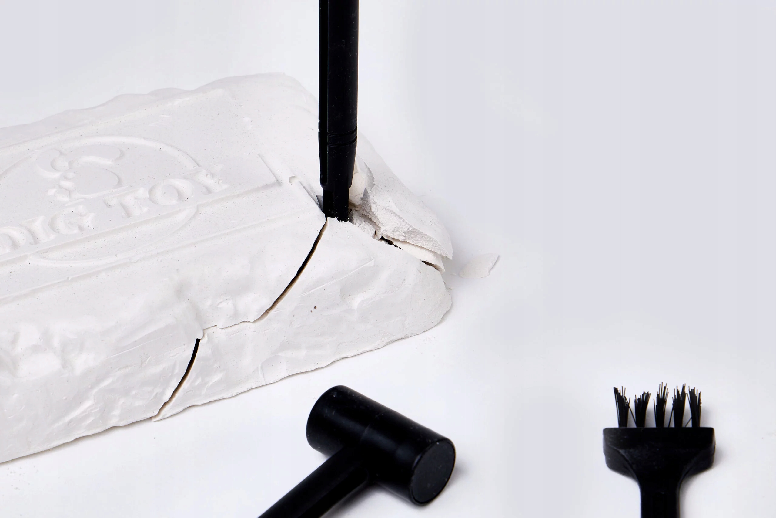 Идеальное предложение для маленьких охотников за сокровищами. Развивающий набор для маленького археолога. Это игрушка, имитирующая археологические раскопки, в небольшом блоке (гипсовой отливке) спрятано около 10 камней разных цветов, которые светятся в темноте. Задача маленького исследователя — извлечь их с помощью инструментов, входящих в набор: молотка, долота и кисточки. Добыча камня – отличный вид развлечения как для детей, так и для взрослых. Этот интересный набор сделает ваше времяпрепровождение за игрой более приятным, что также может привести к развитию нового увлечения.