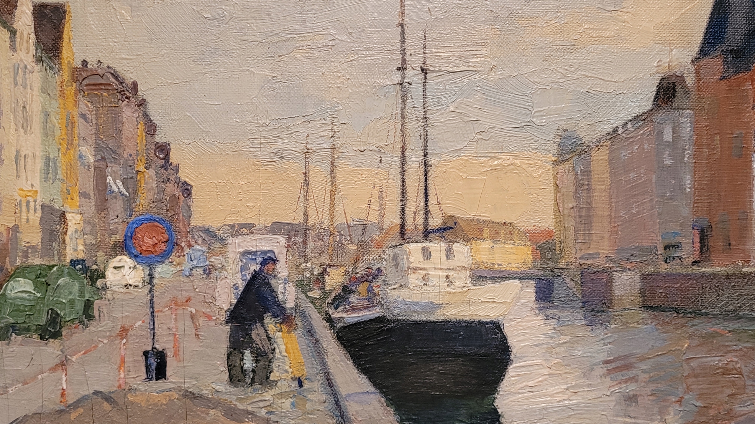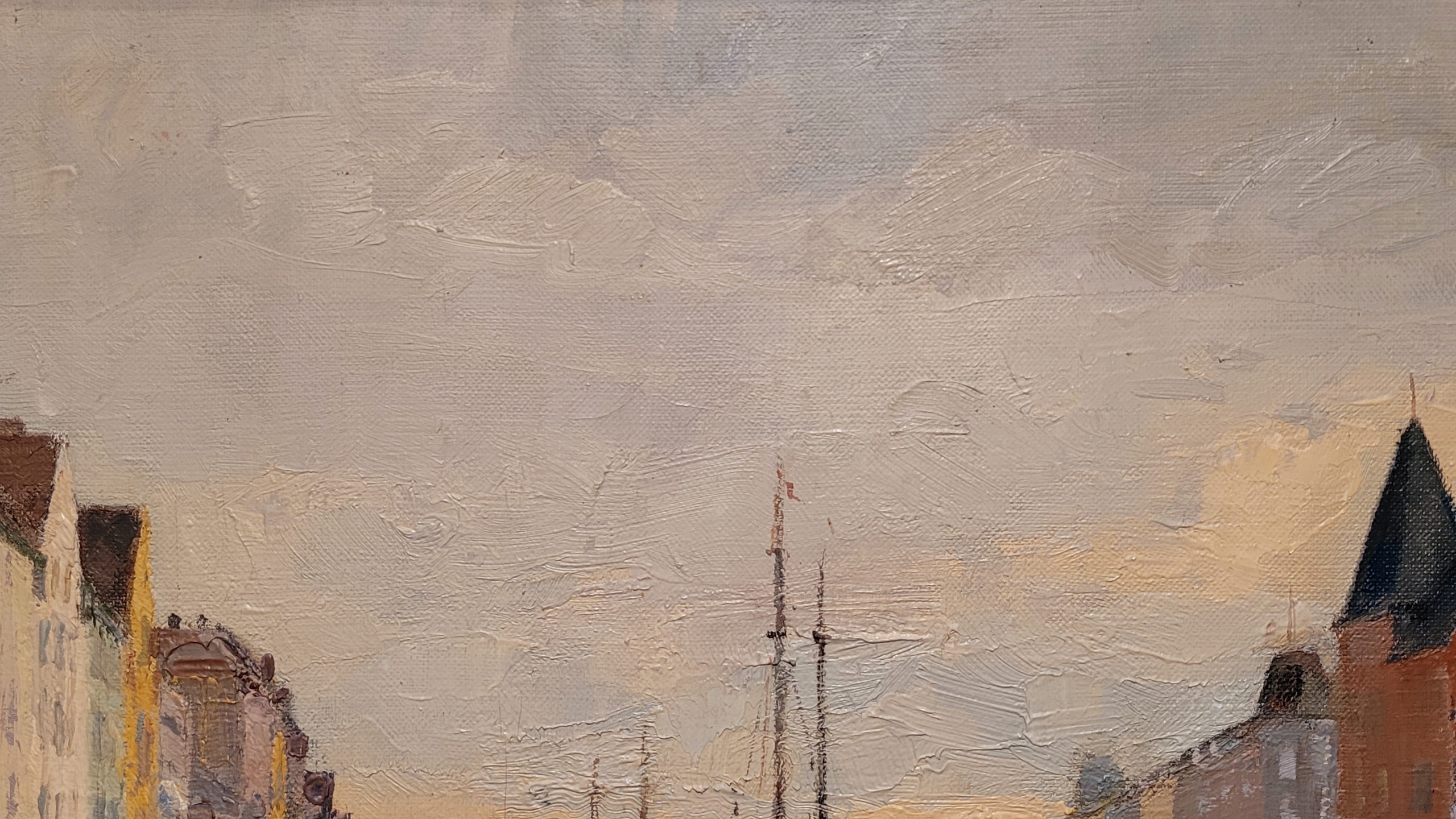 Предмет продажи — красивая старинная картина маслом "КАНАЛ В ГОРОДЕ".