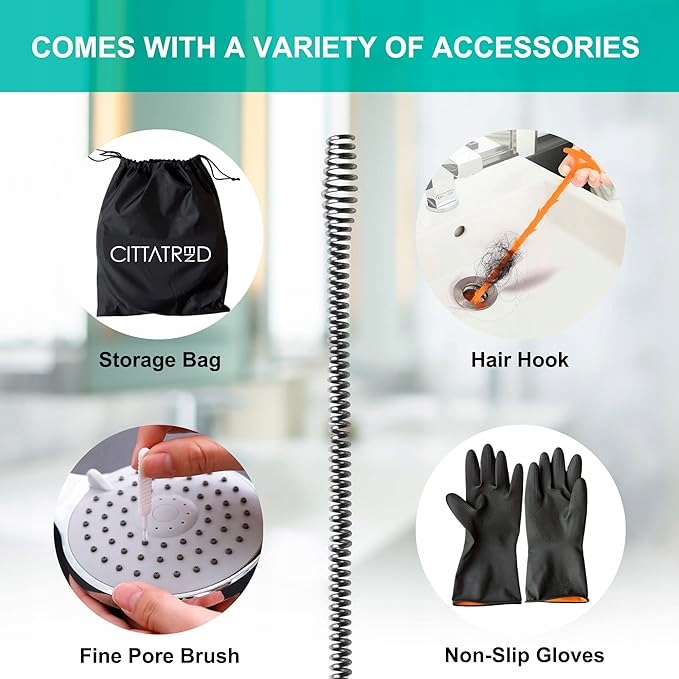 Сверхдлинная спираль подходит для всех типов труб и водостоков и надежно удаляет засоры, вызванные волосами, бумагой, остатками пищи и жира.
