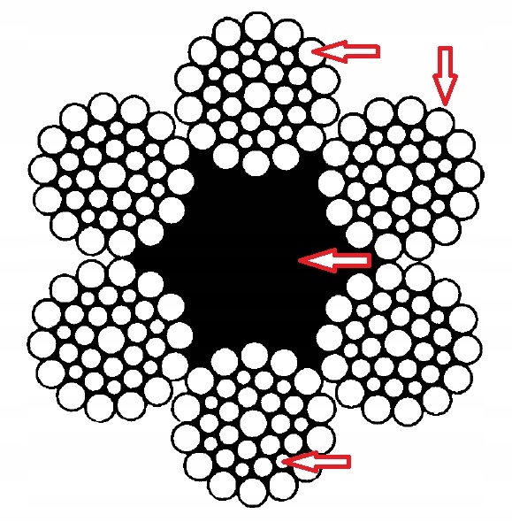 - Канат специальной конструкции 6x36 - FlexMax - согласно приведенному ниже сечению