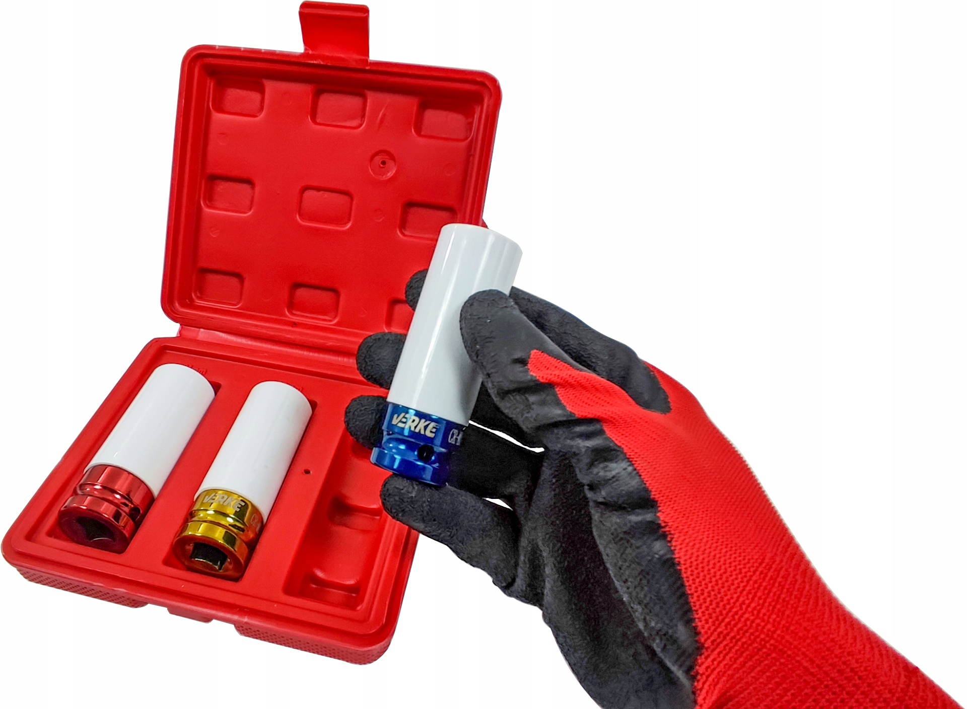 Professional verke набор прикрепления удара является незаменимым инструментом при работе с алюминиевыми ободами. Привязанности были изготовлены из прочной стали CRMO-тела, которая обеспечивает устойчивость к повреждению и долговечности. Благодаря защитному рукаву, они защищают диски от царапин и ущерба для лака, а хромированная отделка в 3 цвета позволяет быстро различать размеры.
