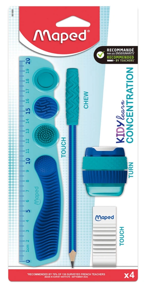 Коллекция концентраций Kidy Learn - это школьные принадлежности, оснащенные сенсорными элементами, которые улучшают концентрацию.