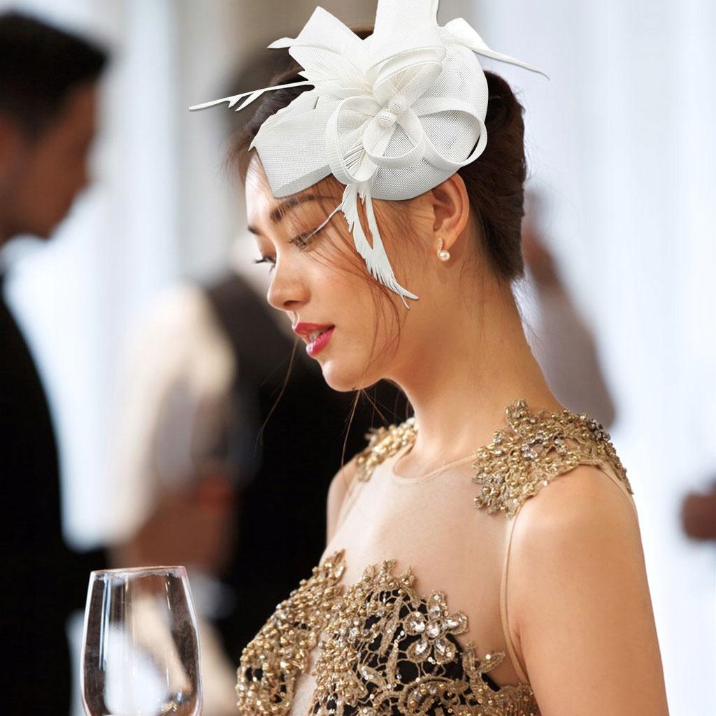 Женская шляпа с чайными чаепитиями с повязкой с повязкой с белым очарованием