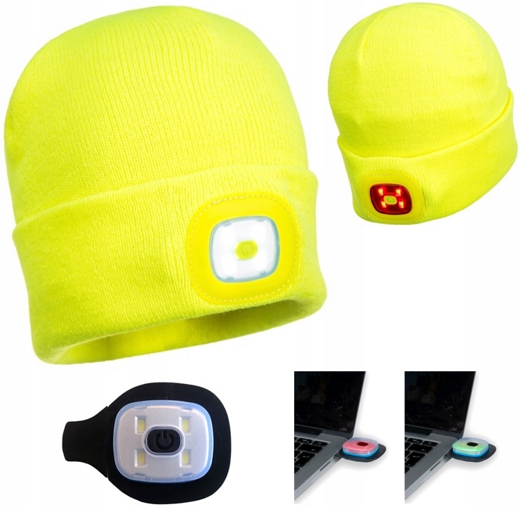 Теплая шапка со светодиодным фонариком спереди и сзади - зарядка через USB