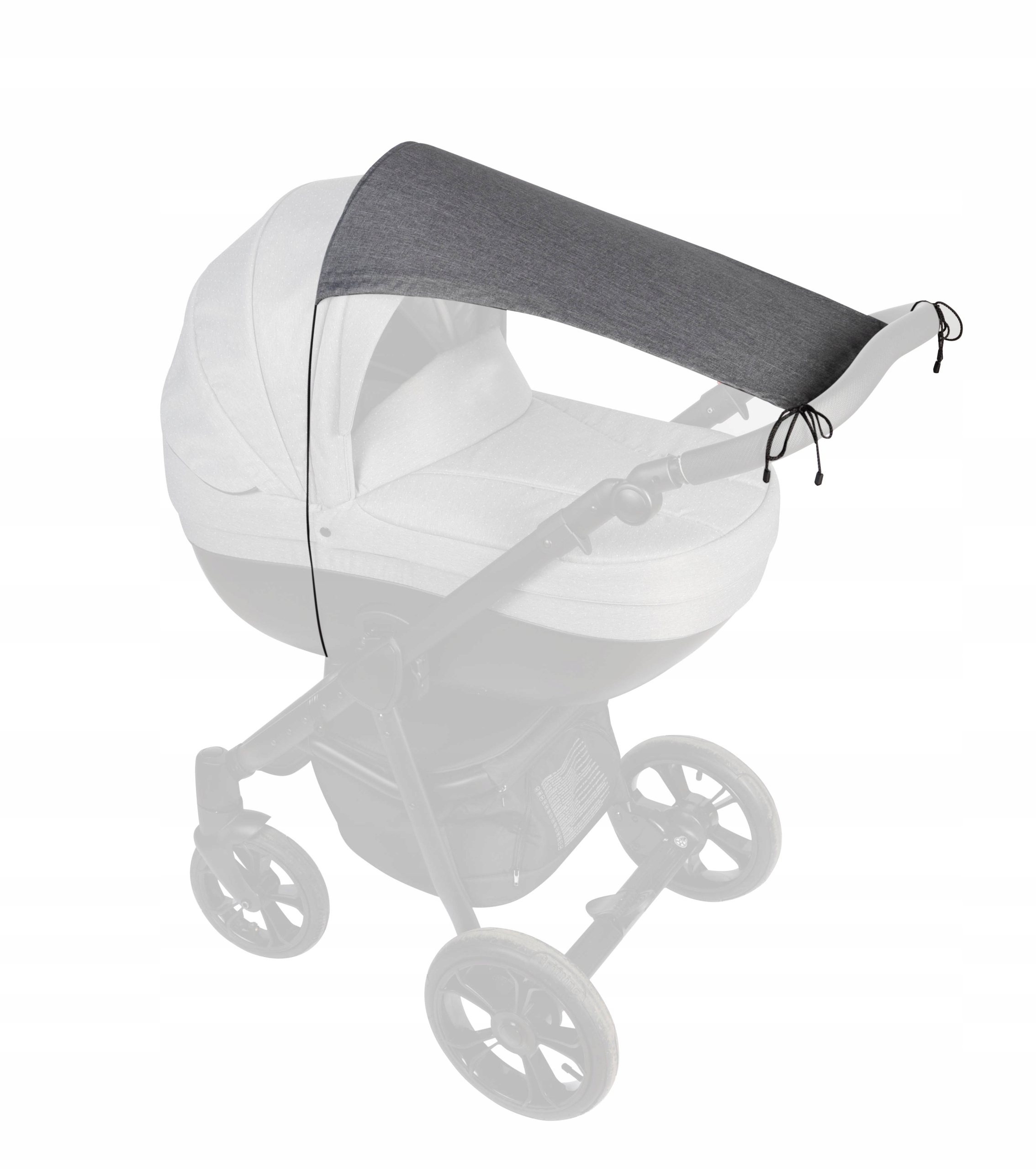 Навес является идеальной альтернативой неудобной и тяжелой коляске. зонтик. Чехол не наклоняется при порывах ветра и занимает мало места. Когда он больше не нужен, его можно легко снять и хранить в косметичке, прикрепленной к козырьку. С помощью шнурков можно перемещать солнцезащитный козырек вверх или вниз, получая таким образом необходимую в данный момент форму чехла.