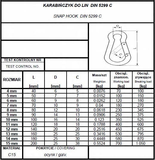 Карабинер до линии 13 мм - 1 ПК DIN 5299C / ATEST