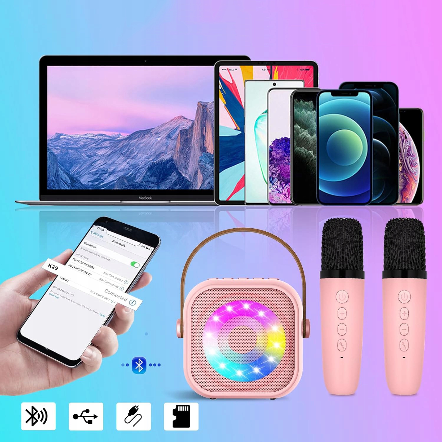 Просматривая «Караоке -машина Bluetooth -динамик караоке -машина с красочными огнями», вы можете быть уверены, что данный товар из каталога «Наборы для караоке» будет доставлен из Польши и проверен на целостность. В цене товара, указанной на сайте, учтена доставка из Польши. Внимание!!! Товары для Евросоюза, согласно законодательству стран Евросоюза, могут отличаться упаковкой или наполнением.