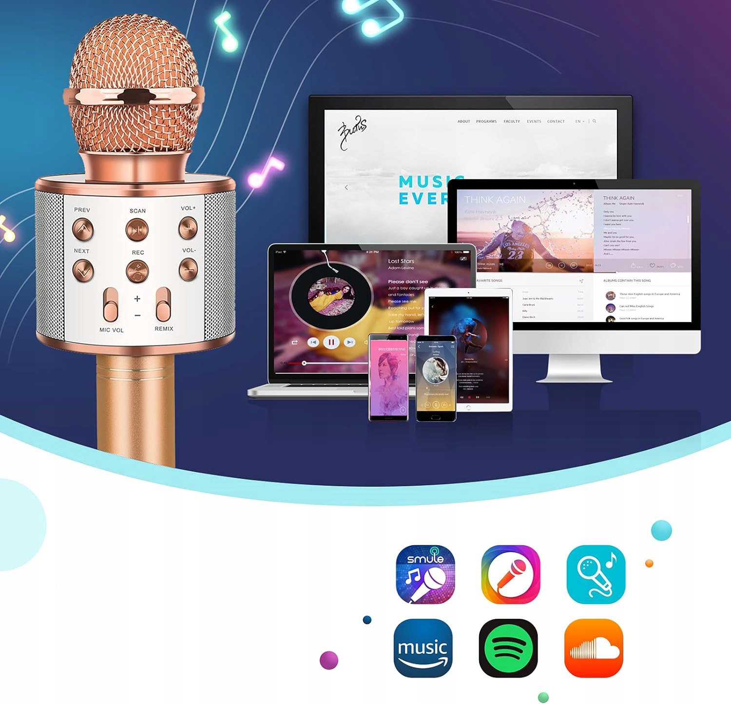 🎈-Разноцветные светодиоды будут меняться в ритме музыки, создавая прекрасная певческая атмосфера.