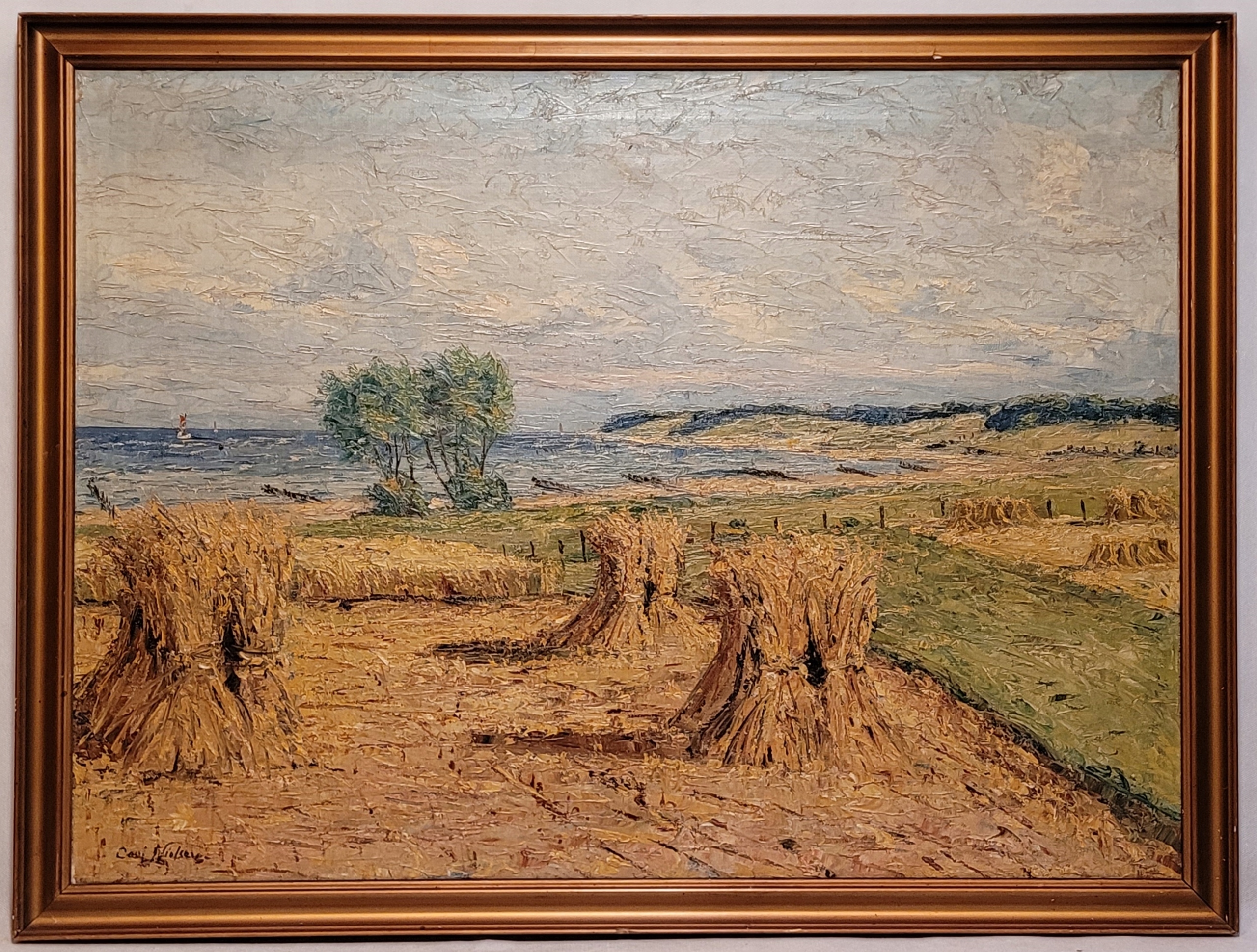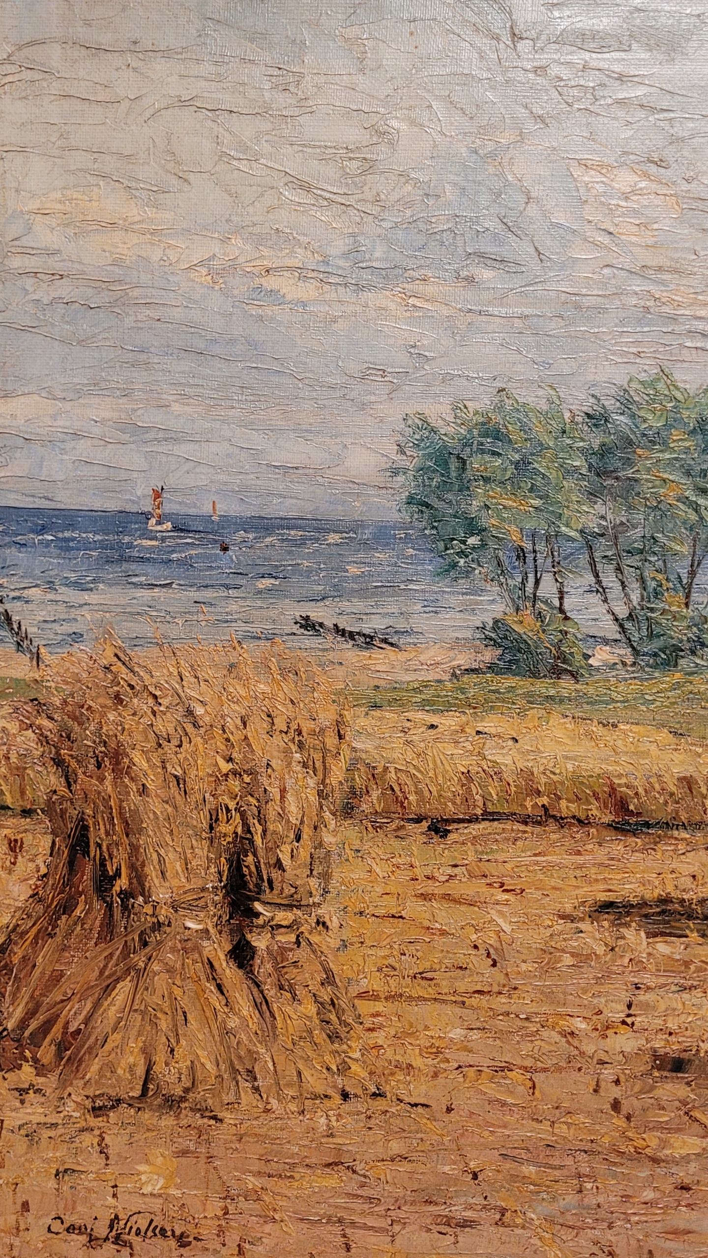 Карл Нильсен (1894 -1968) - «Летний пейзаж», старая нефтяная картина.