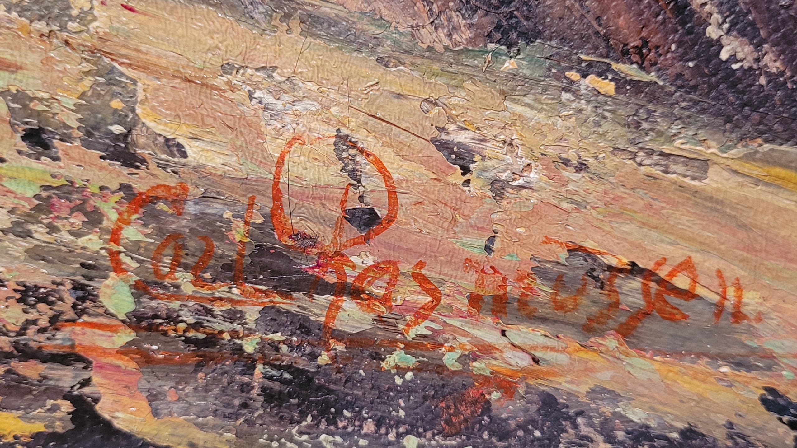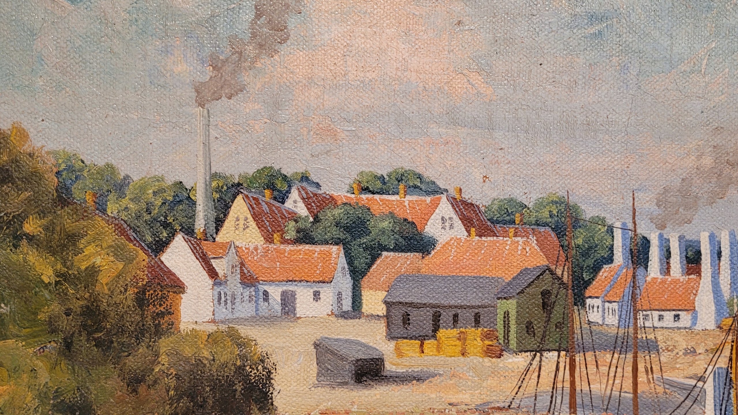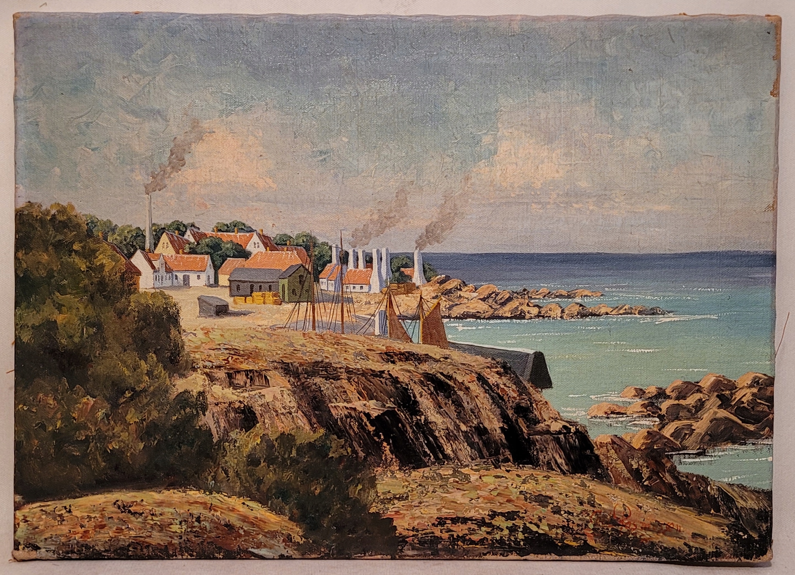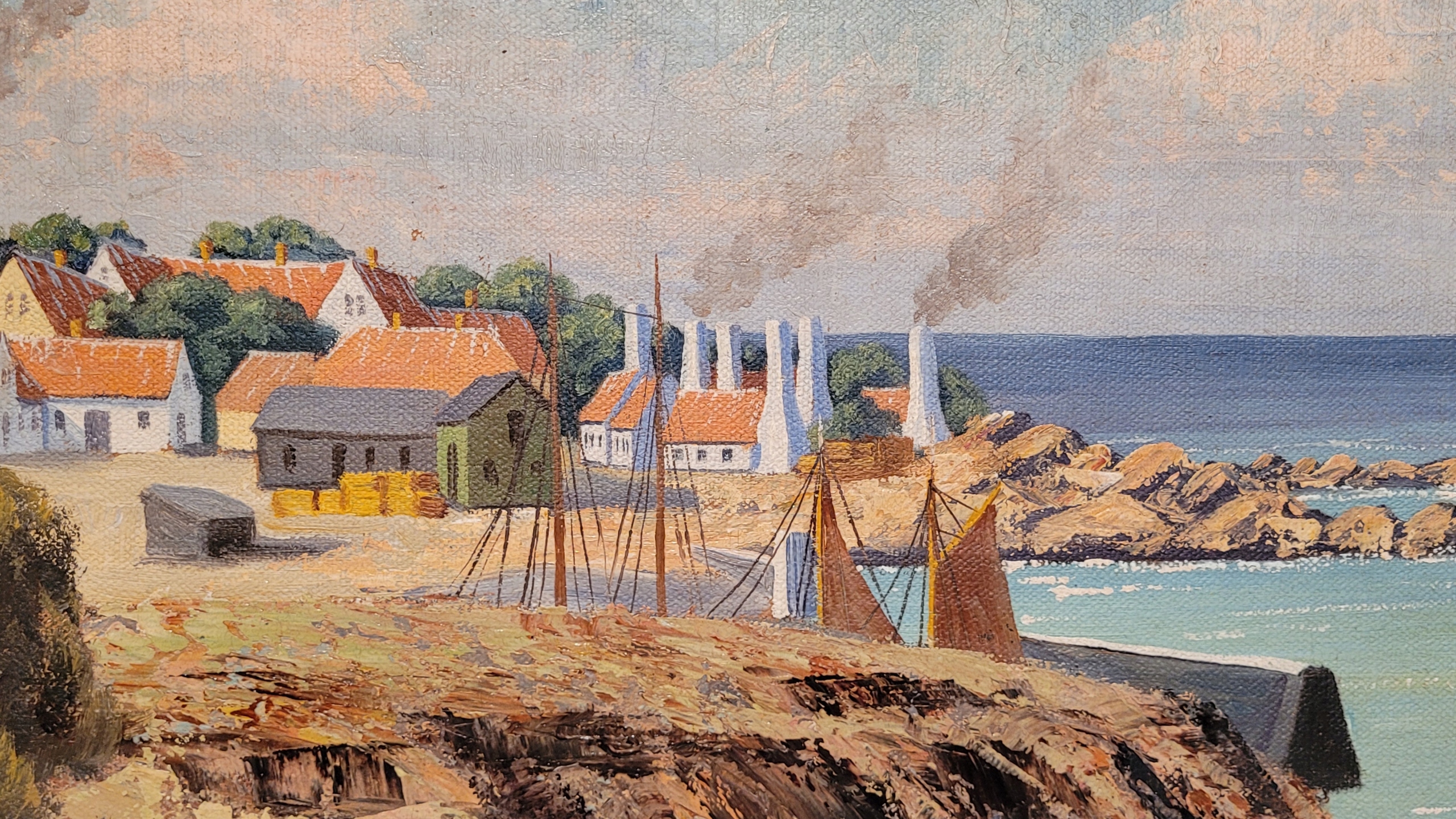 Карл Расмуссен - «рыболовная деревня», красивая нефтяная картина.