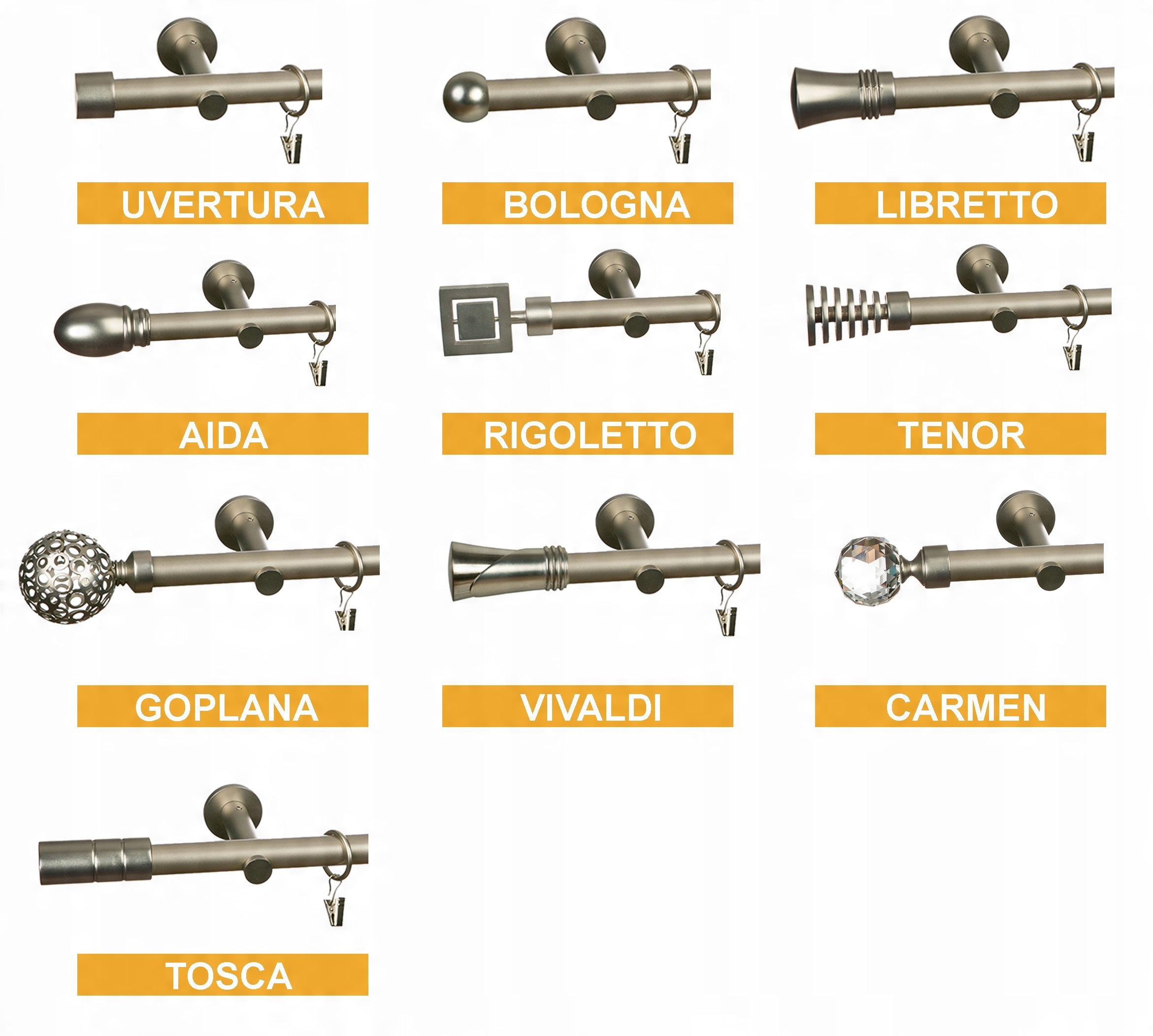Ниже представлены цветовые варианты карнизов и типы наконечников на выбор.