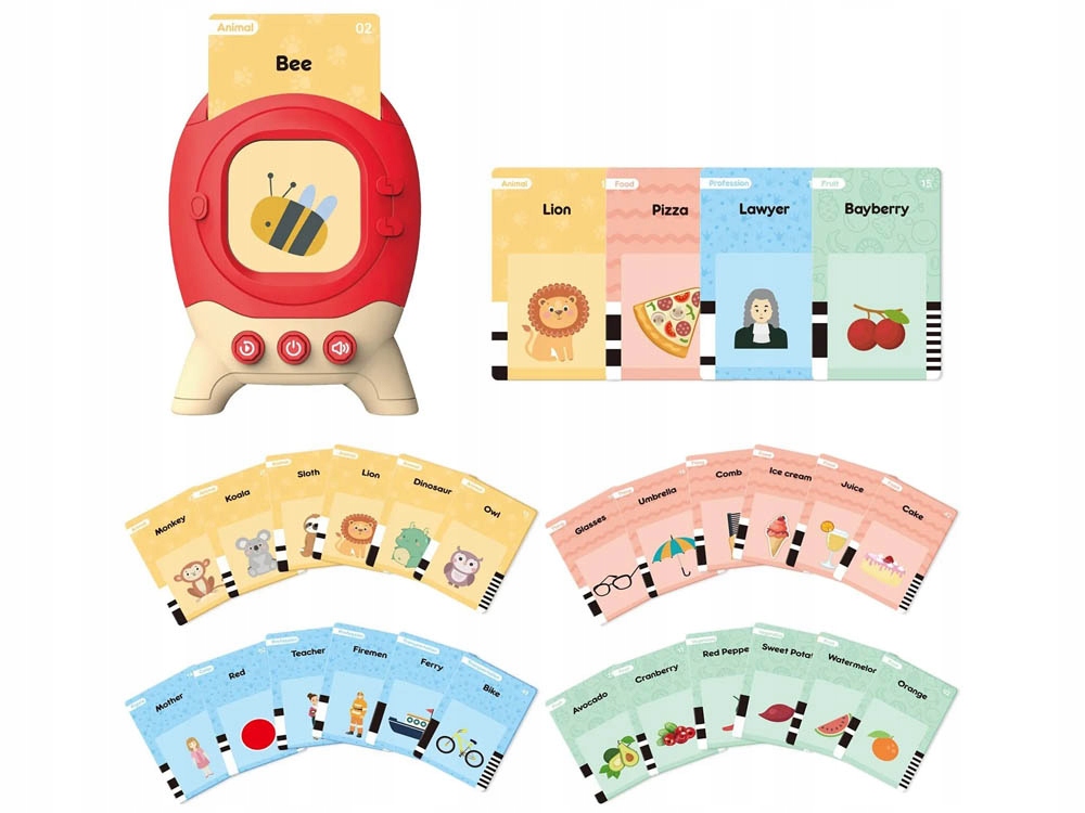 Кард-ридер, предназначенный для детей и других людей, которые только начали свой путь в изучении английского языка. Играя, ребенок легко и приятно выучит слова из таких категорий, как: продукты, животные, транспорт. Выученные вами выражения обязательно пригодятся на уроках иностранного языка, а также в будущем, в повседневной жизни или во время путешествий за границу. Это практичная развивающая игрушка, сочетающая обучение с развлечением.