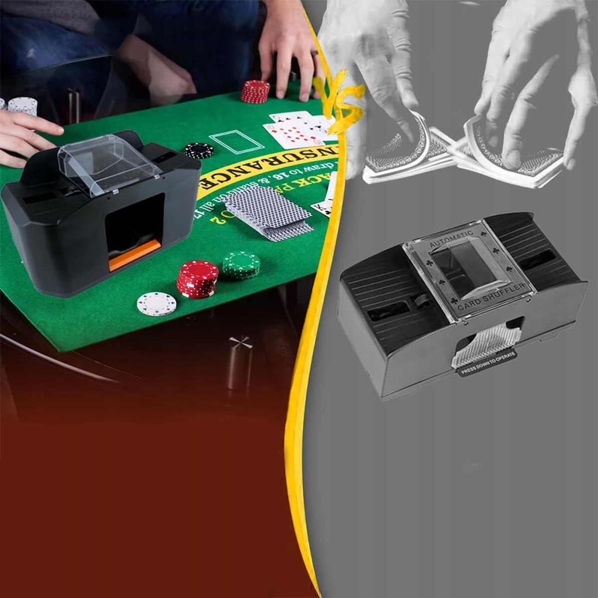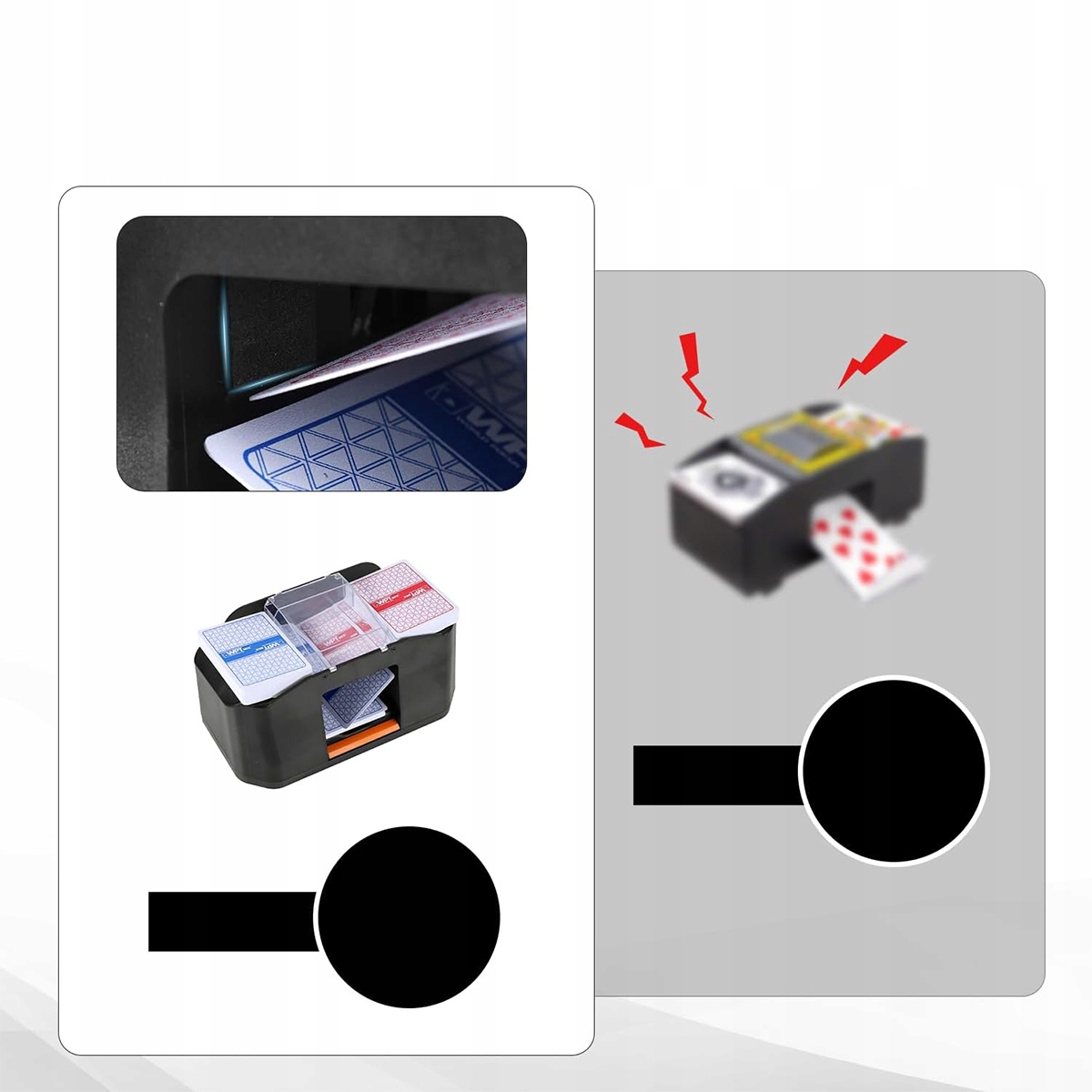 Этот полностью автоматический ташер карты оснащен батареей большой емкости и поддерживает зарядку с помощью USB Type C. Полная зарядка позволяет провести более 1500 перетасовки, обеспечивая долгосрочную веселье без частой зарядки. p>