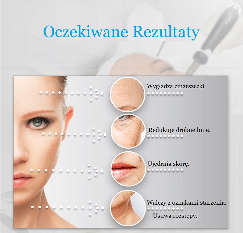 Посредством микропроколов он стимулирует регенеративные процессы, происходящие в коже, тем самым увеличивая выработку коллагена и эластина, делая кожа становится упругой, рубцы постепенно уменьшаются, а морщины разглаживаются.Это очень универсальный инструмент, поэтому процедуры можно проводить на всем лице, шее, зоне декольте, животе, бедрах, ягодицах или коже головы.