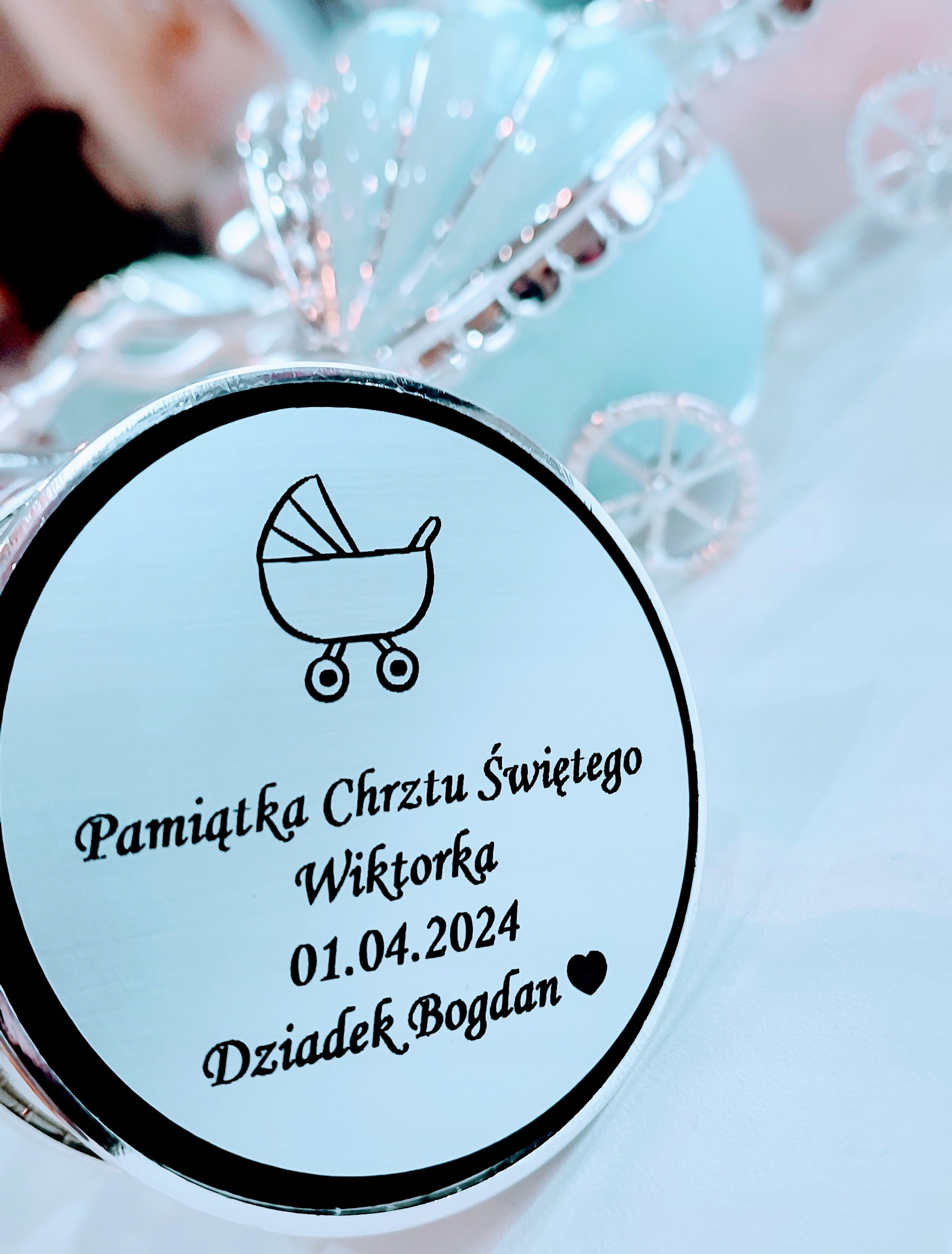 Представленная карусель является многофункциональной - это SO -SALLED 3 в 1. Музыкальная коробка, фоторамка и ротационная карусель. Он сделан из серебряного металла; Покрыт розовой и жемчужной эмалью и эффективными белыми кристаллами. Его можно поместить на комод, подоконник или полку в детской комнате. Реакция малыша на этот дар может быть очень интересной :) - он вытащит ручку на кадр, будет смотреть на фотографии или успокоить под воздействием мелодии, что ясно покажет, что подарок любит ребенка :) Это также может быть дополнением к большему подарку или общеизвестному «конверту».