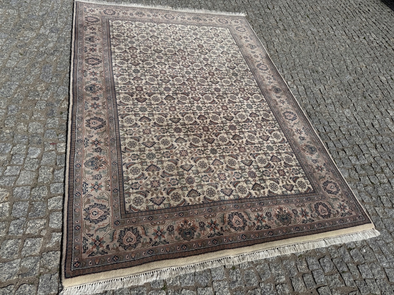 Субъект: Персидский коврик -рука -недостаток Индо Герати. Имеет сертификат подлинности. В галерее, до скидки, это стоило 2250 евро или около 11 000 человек. уникален из -за его рисунка, а также цвета. Это верхний коврик.