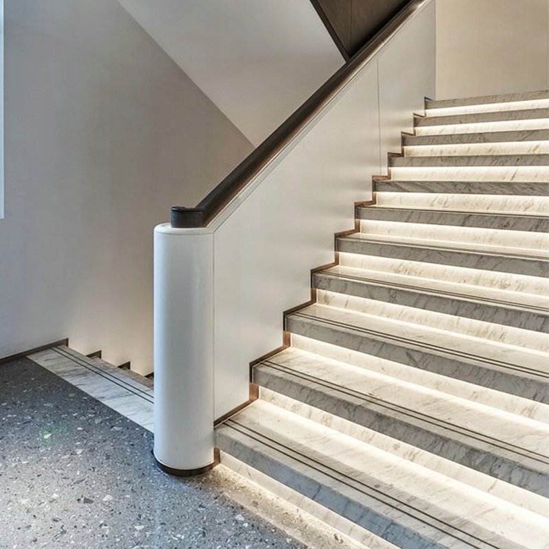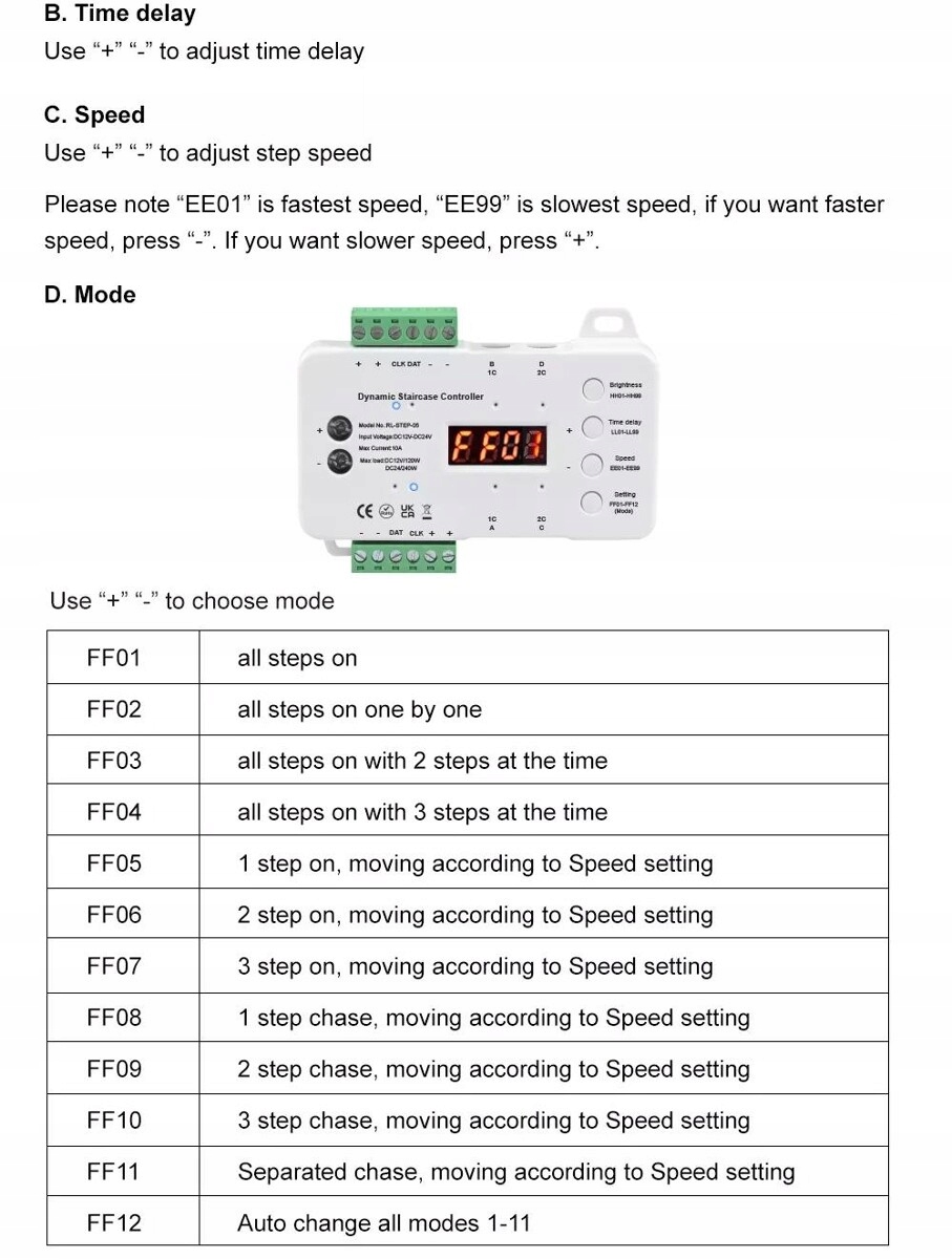 Контроллер обеспечивает плавное каскадное освещение лестничного освещения, расположенное на ступенях лестницы или рядом со ступенями, чаще всего это светодиодные ленты - светодиодные ленты, размещенные в ступеньках, или светодиодные светильники, размещенные в стене рядом со ступенями, или другие виды лестничного освещения.
