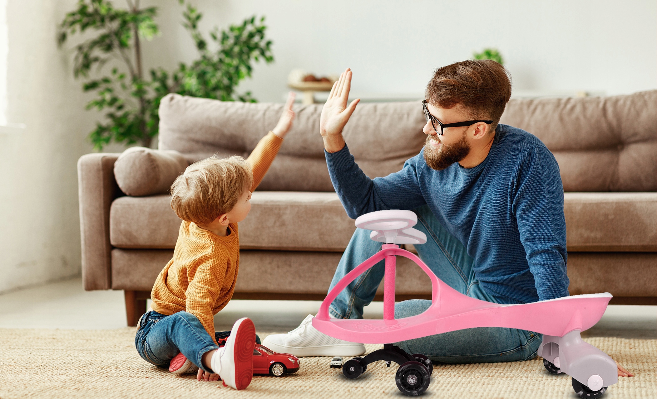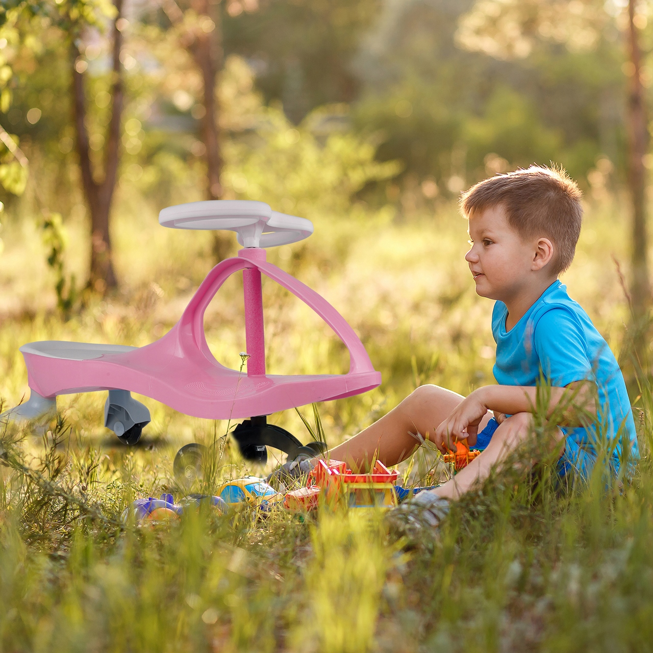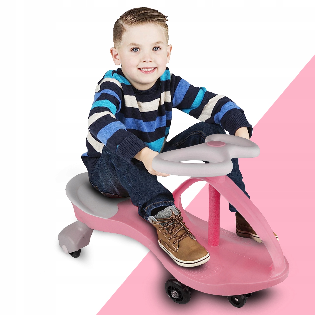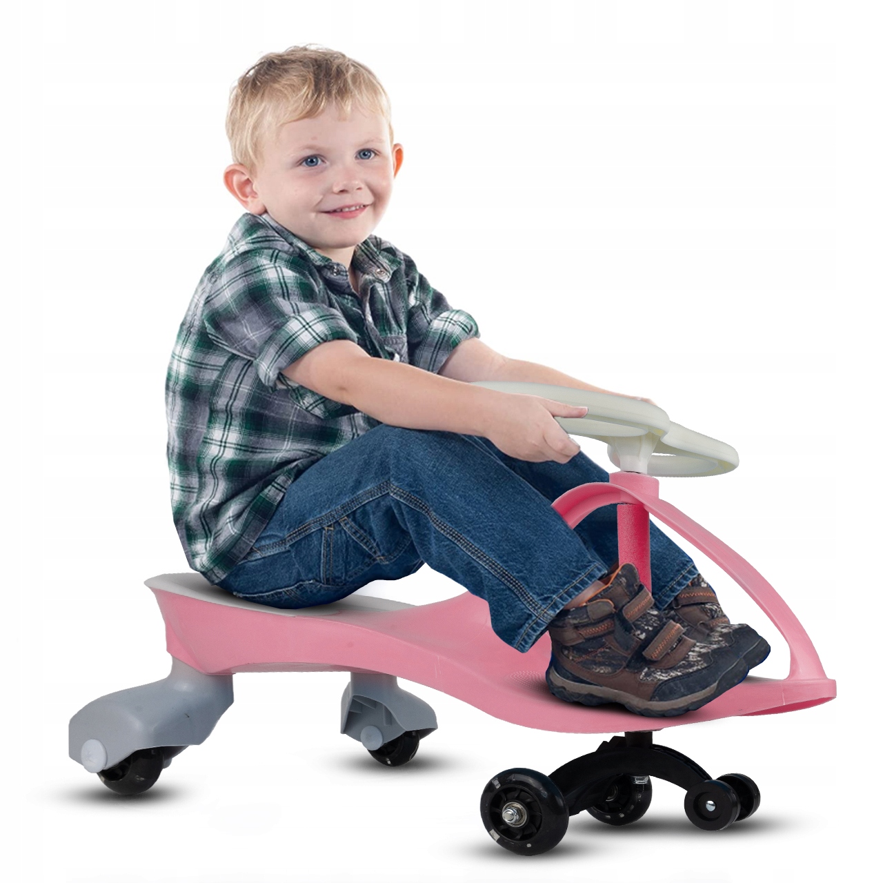 Чтобы начать движение, достаточно попеременно повернуть руль влево и вправо. Силы мышц малыша достаточно, чтобы начать отличное развлечение! Автомобиль также имеет широкое профилированное сиденье и нескользящие опоры на сидении, что повышает комфорт вождения. Дополнительным преимуществом являются светящиеся колеса, которые делают развлечение более привлекательным, а также делают поездку более заметной.