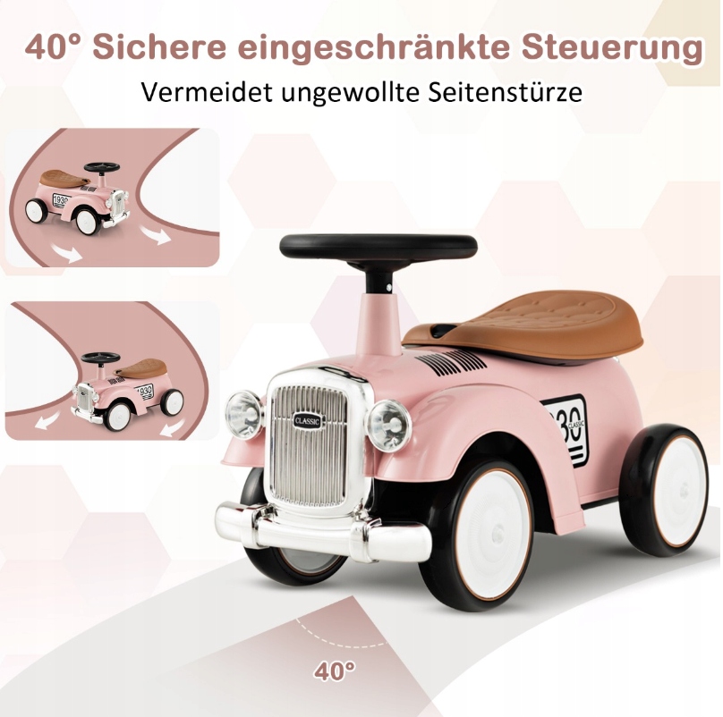Безопасное и реалистичное вождение: Этот автомобиль в стиле ретро имеет реалистичный руль со звуком, который позволяет детям легко повернуть налево. или правильно, правильно. Угол поворота руля ограничен 40°, чтобы предотвратить случайное падение вбок.