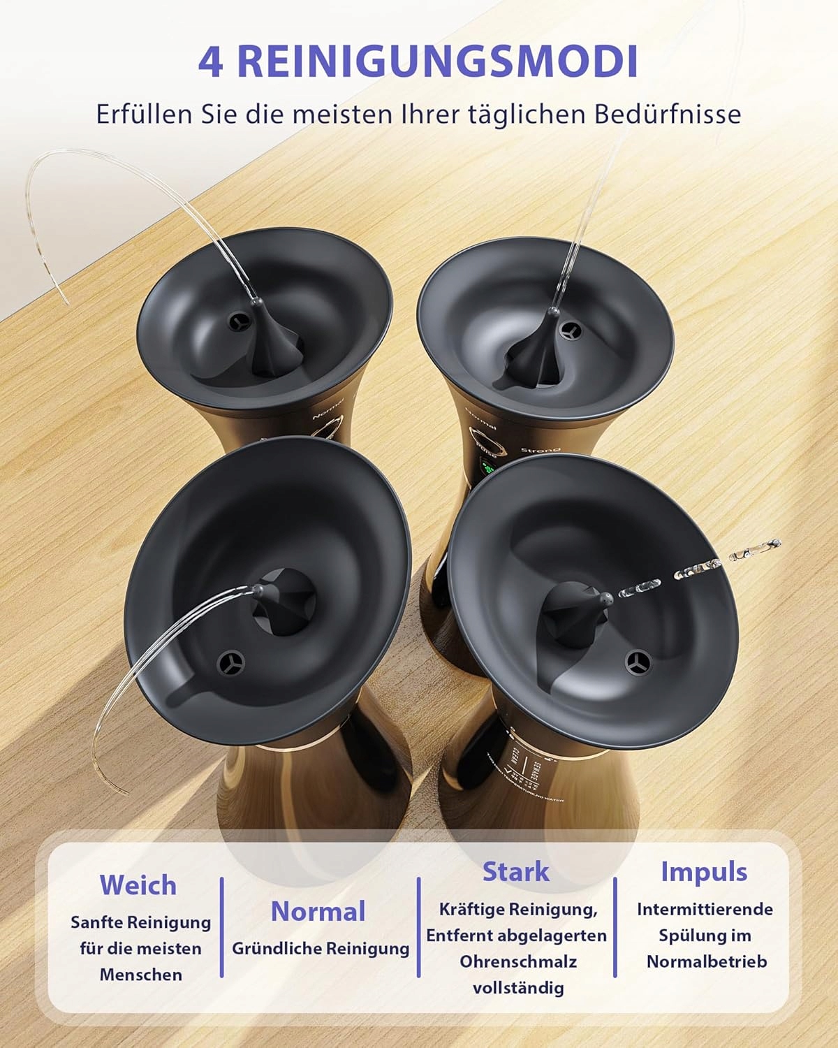 ✅ 4 Режимы работы - Нормальные, мягкие, сильные, импульсные - адаптированы к потребностям разных пользователей ✅ Датчик температуры воды - диод сияет зеленым, когда температура безопасна ✅ Интегрированный двойной резервуар для воды - удобно в использовании, без дополнительных контейнеров ✅ Ipx7 водонепроницаемый - устройство можно промыть под проточной водой ✅ Безопасный и удобный поток воды - сопло с тремя тонами для лучшей защиты барабанной перепонки ✅ 900 мАч-батарея, встроенная литий-полимерная батарея, зарядка USB